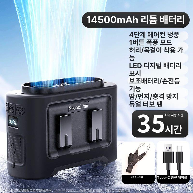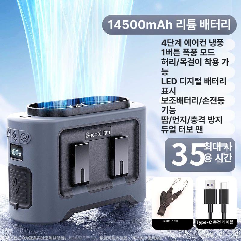휴대용 허리 선풍기 벨트 캠핑 허리걸이 보조배터리 휴대용허리선풍기