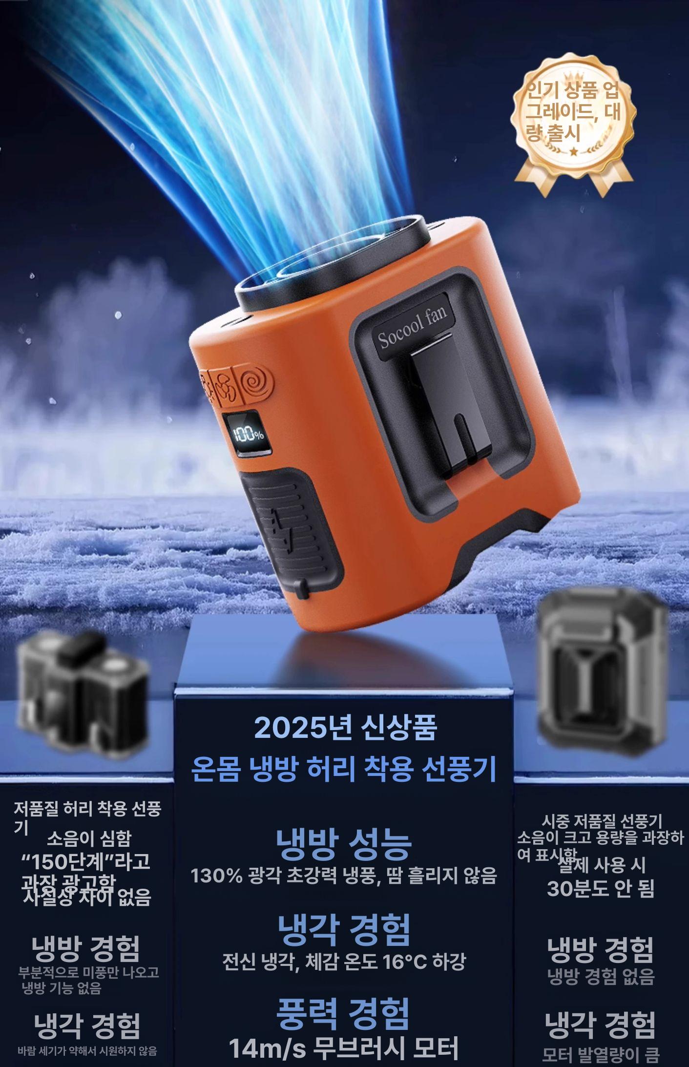 허리선풍기 휴대용 초강력 충전식 야외 작업 쿨링 현장 웨어러블 소형