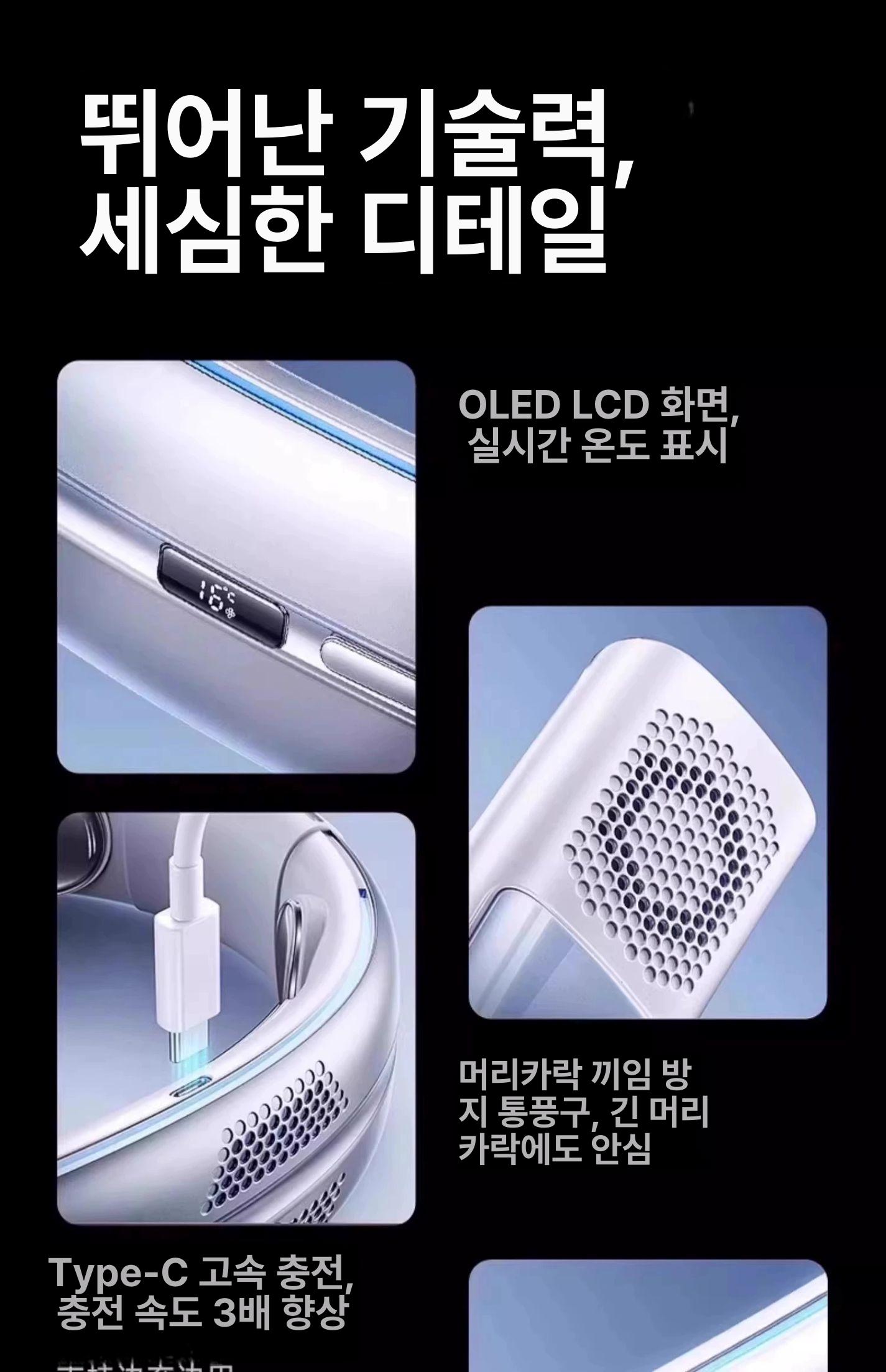 최신형 넥밴드 에어컨 고속충전 목풍기 휴대용 쿨링 넥선풍기 고속