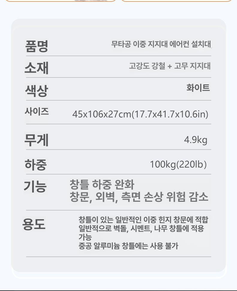 창문형 에어컨 거치대 받침대 창문형에어컨거치대 더블바타입 서포트