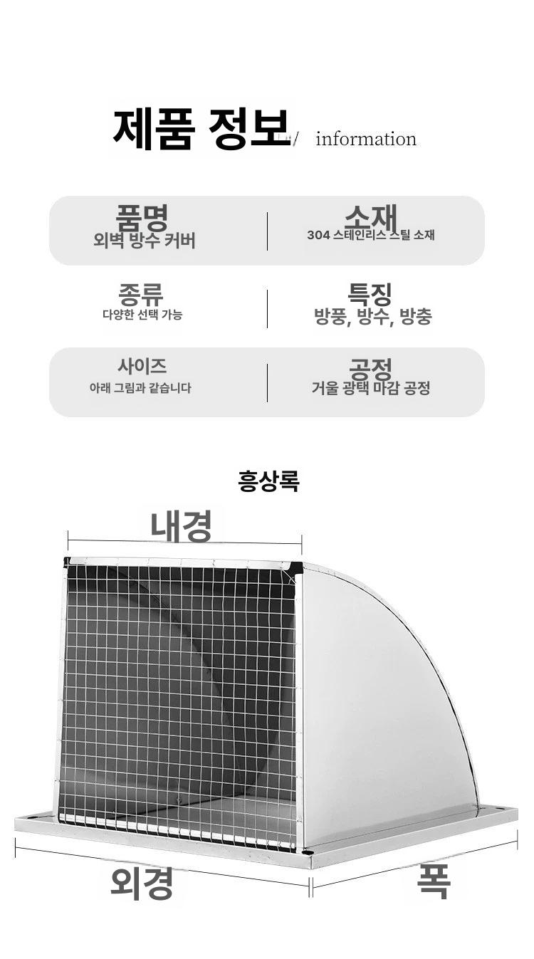 환풍기 커버 역풍 외부 스텐 후드캡 불순물 후드 비막이 환풍구