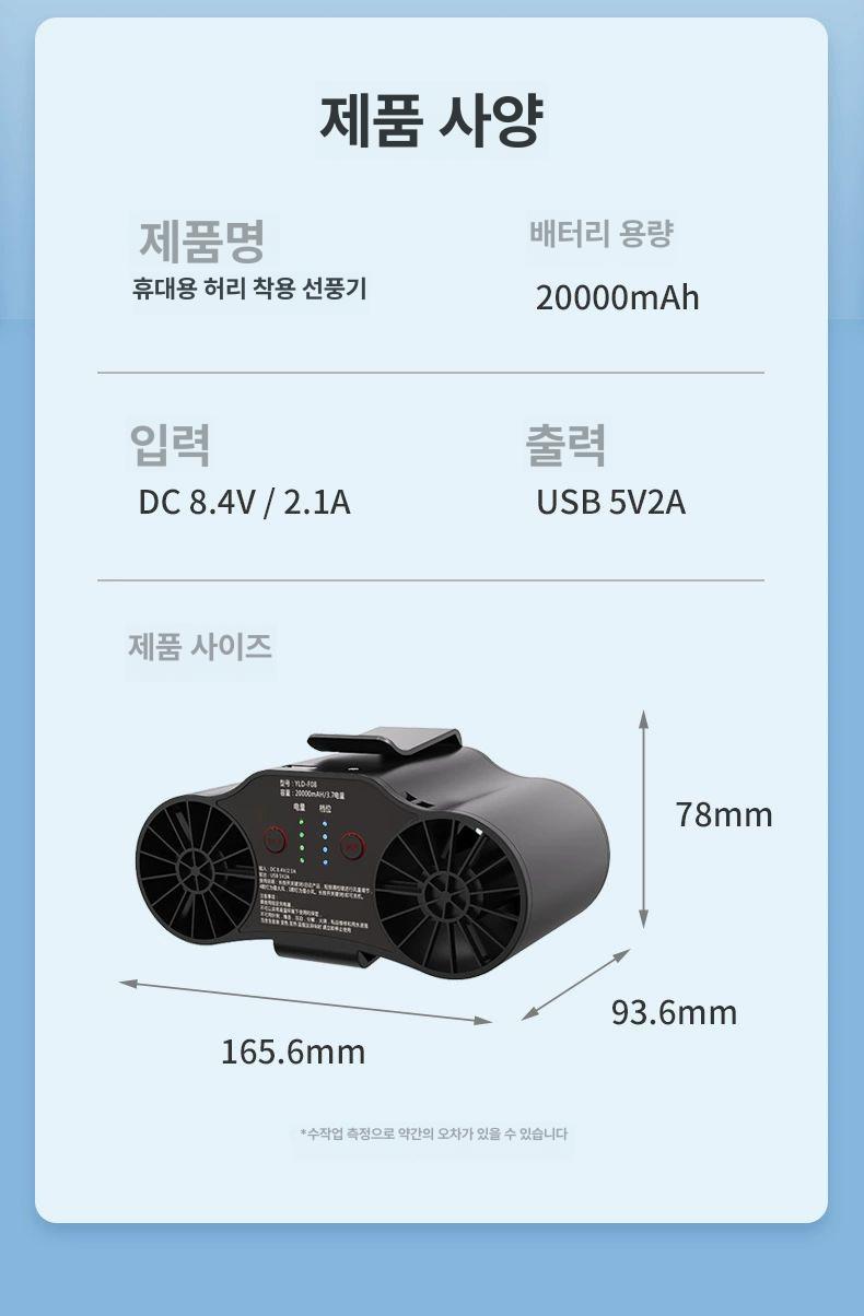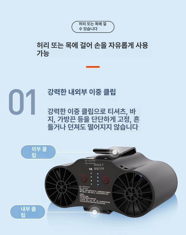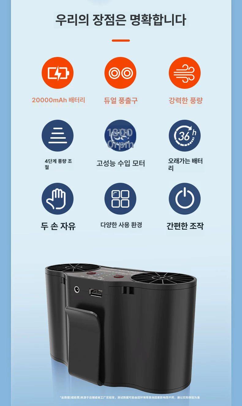 허리선풍기 휴대용 아웃도어 캠핑 골프 팬 냉각 충전식 충전