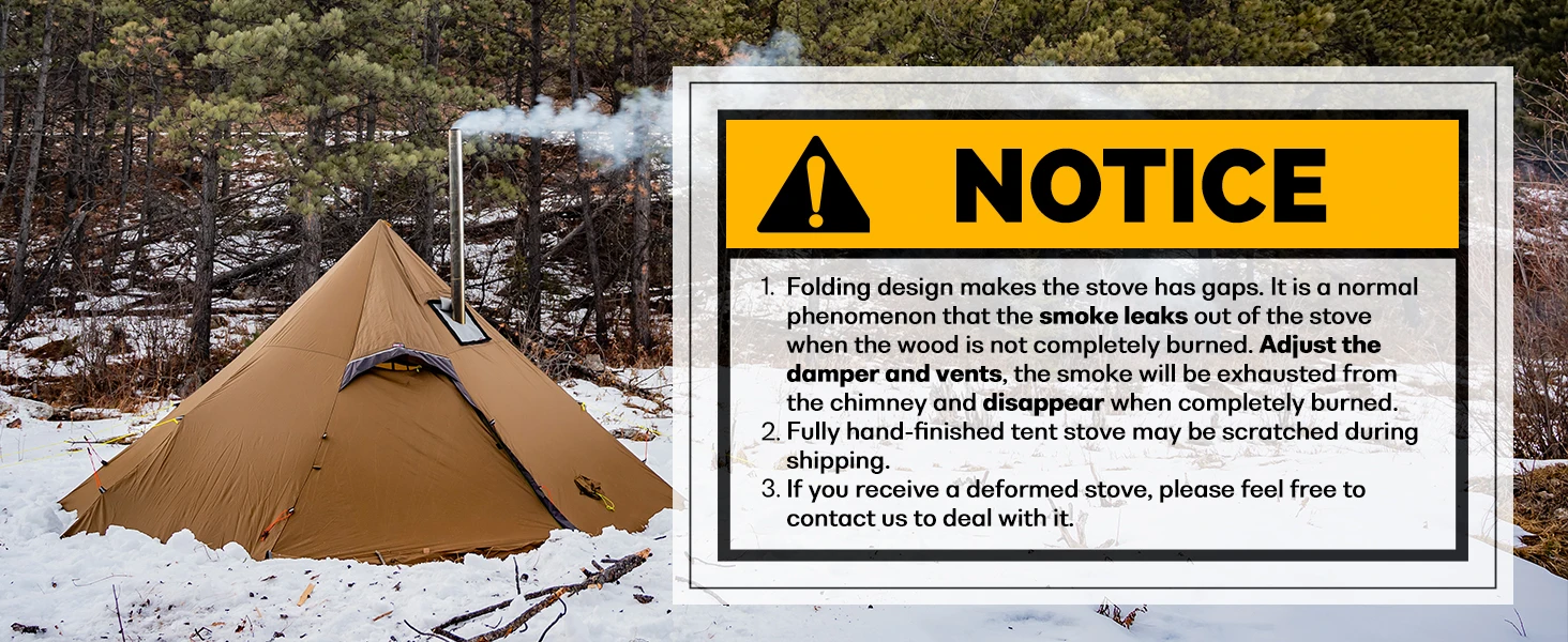 더 빨리 불을 피우고 연소 시간을 최대화하기 위해 휴대용 장작 난로의 세 면에 공기 흡입구를 추가 2차 연소를 달성하기 위해 공기 흡입량을 25 증 켜 목재 소비를 효율적으로 줄이고 열 출력을 최대화 더 짧은 시간에 텐트를 가열하고 요리 시간을 20 단축하세요
