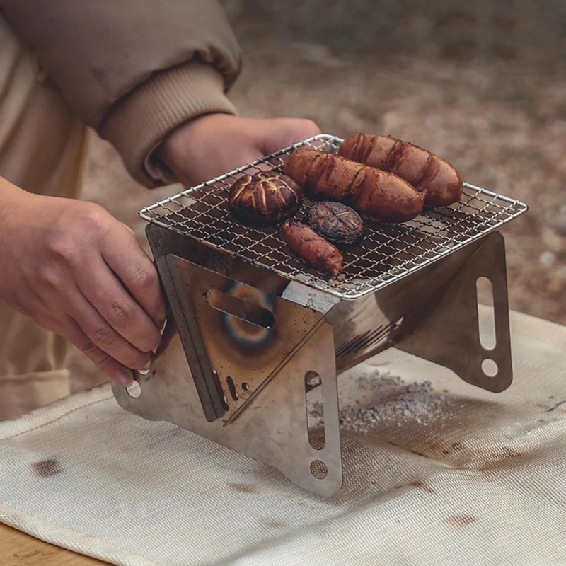 스테인리스 스틸 그릴 과 함께 스테인리스 스틸로 제작된 이 휴대용 캠핑 스토브는 높은 열이 발생하더라도 꾸준히 밝게 타오를 것입니다