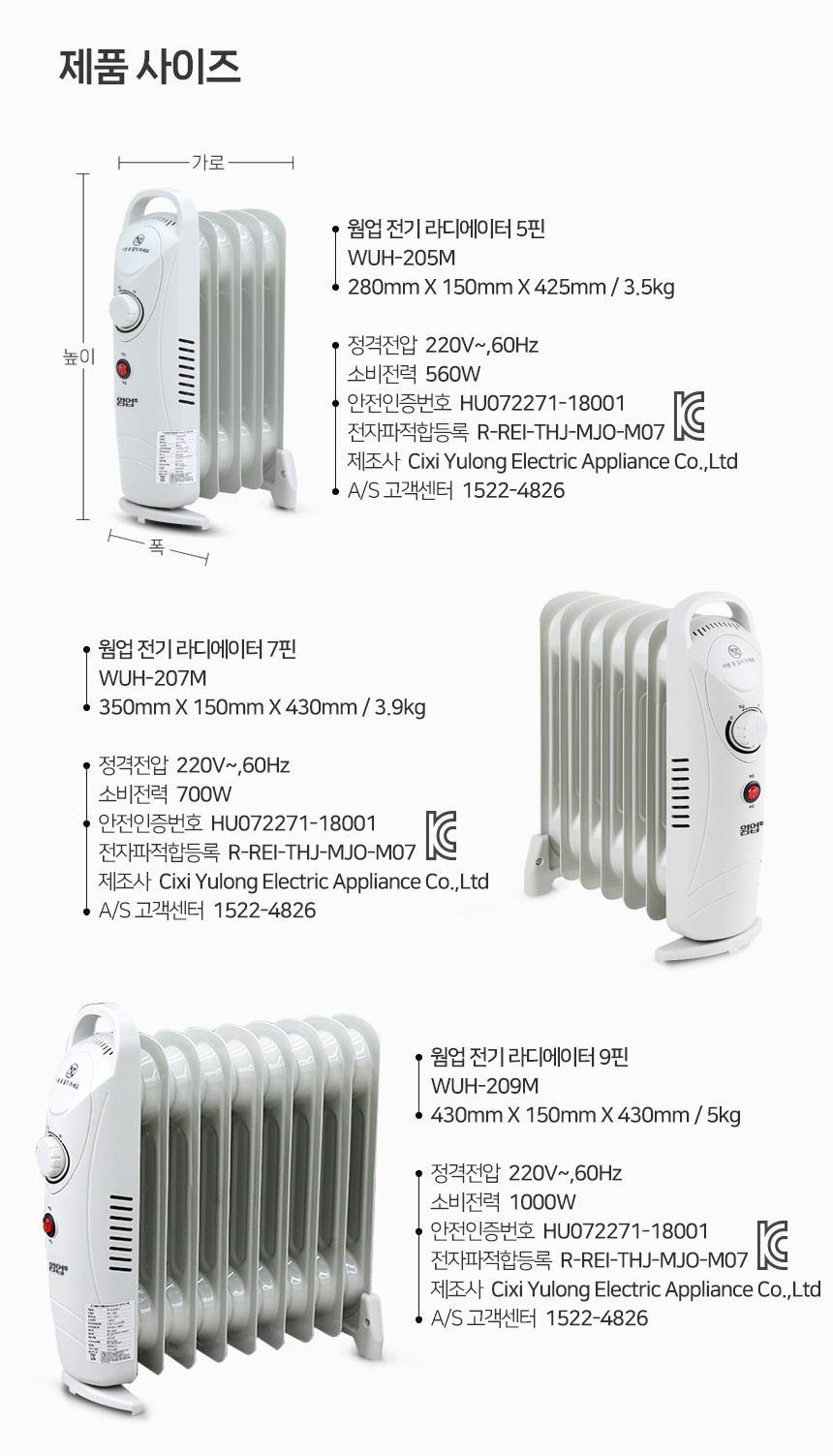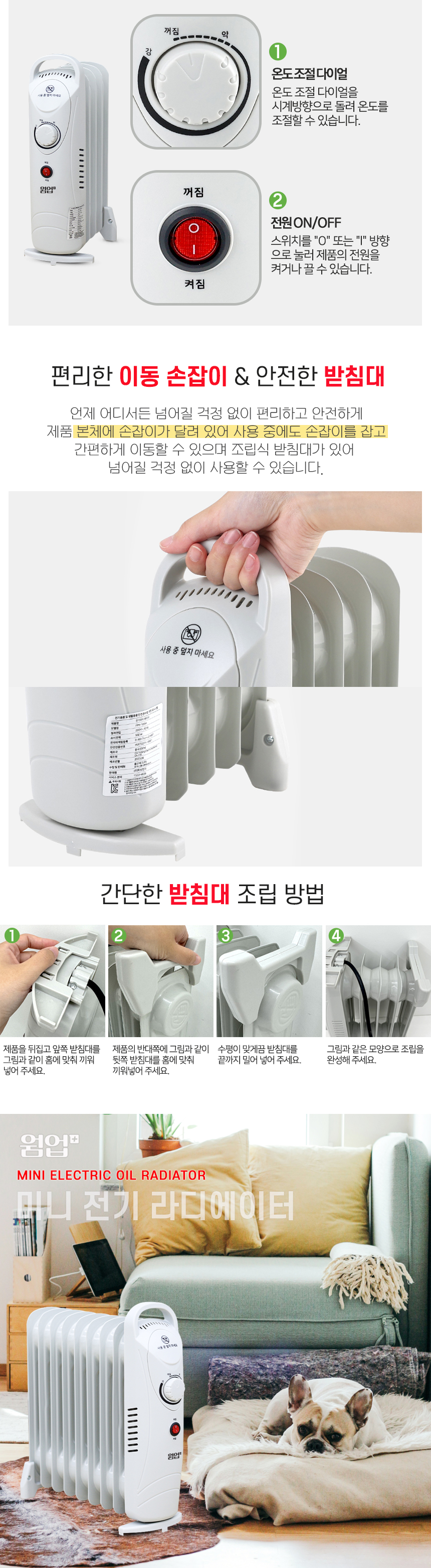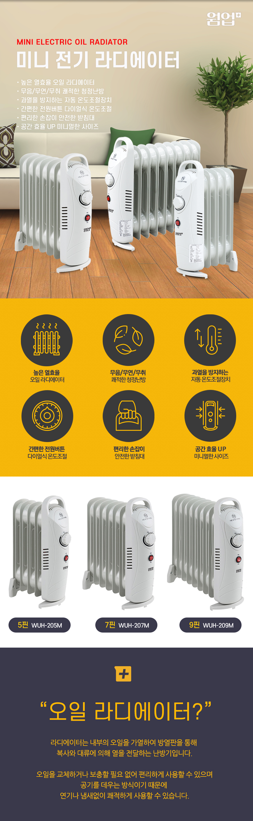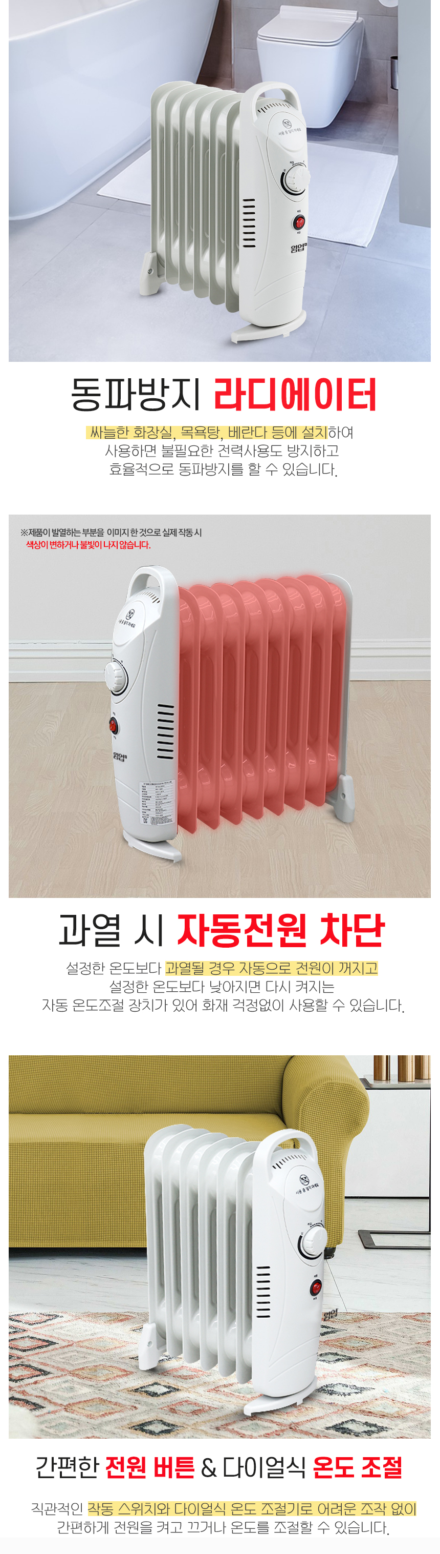 화장실 히터/동파방지 라디에이터/웜업 플러스 5핀 미니 전기 라디에이터/WHU-205M