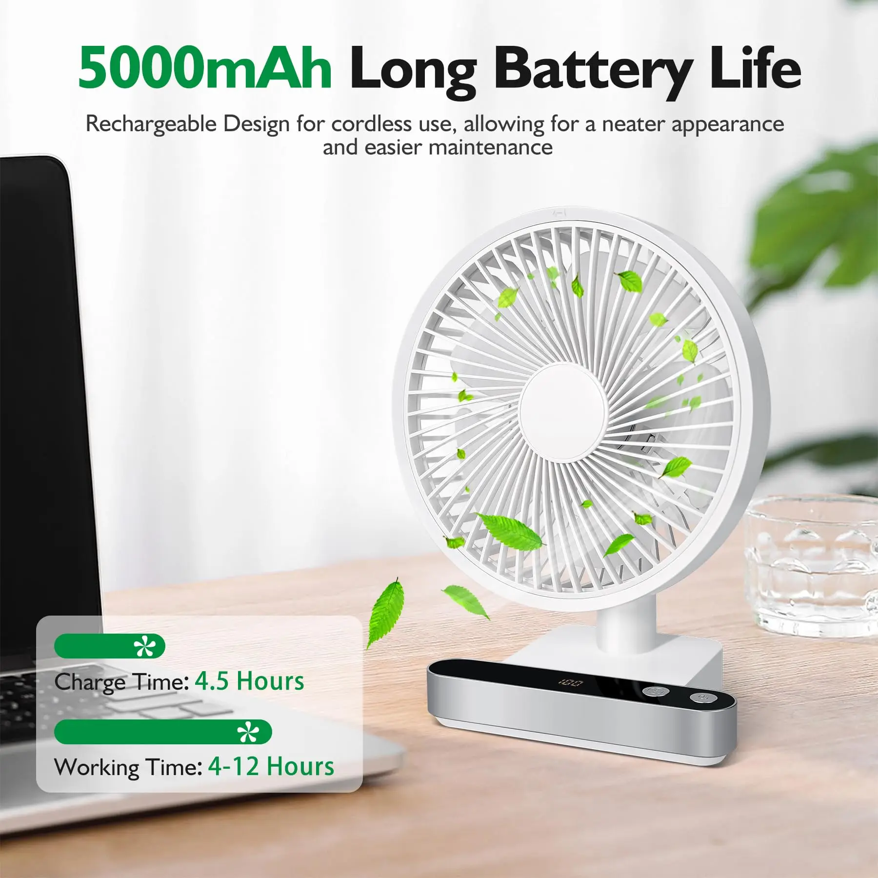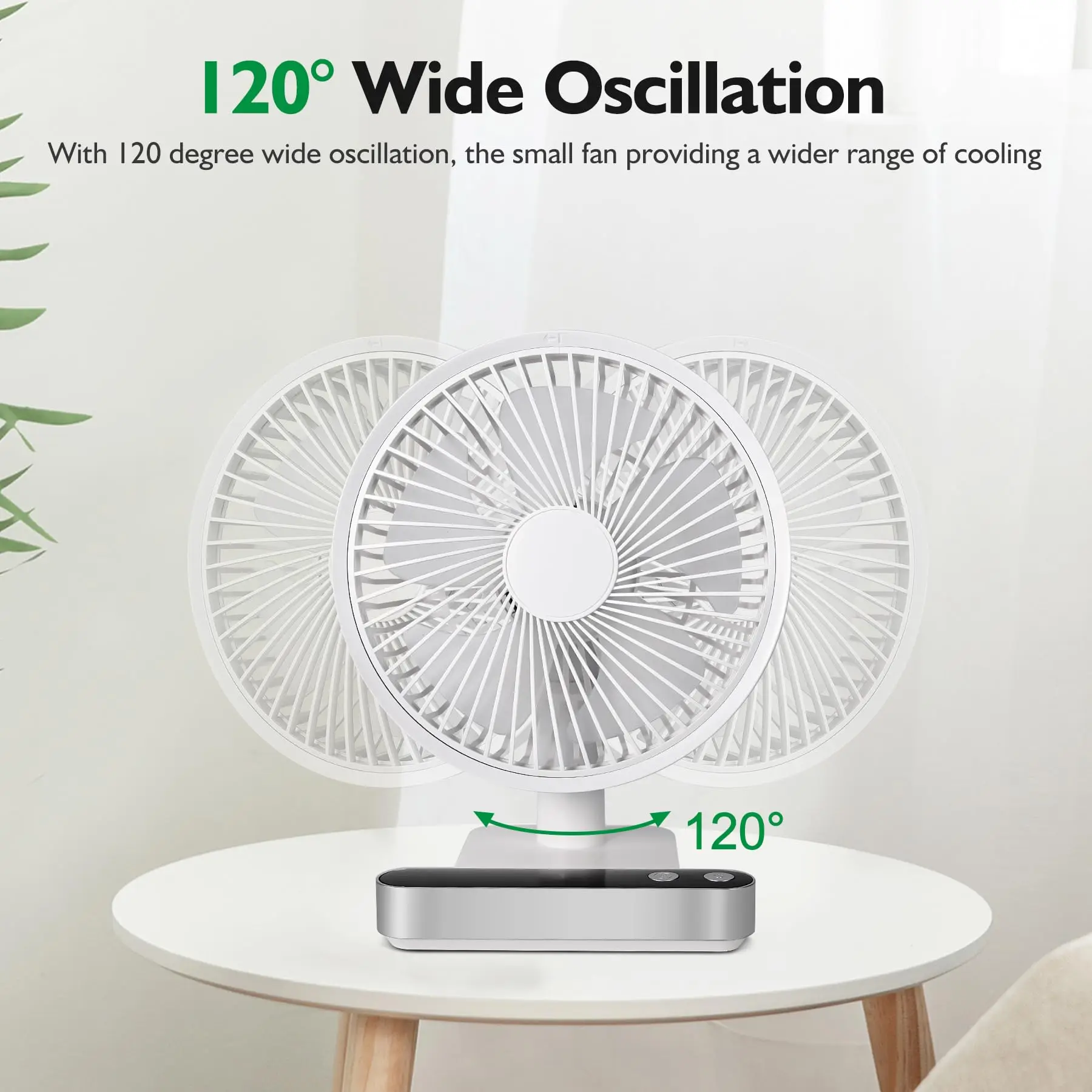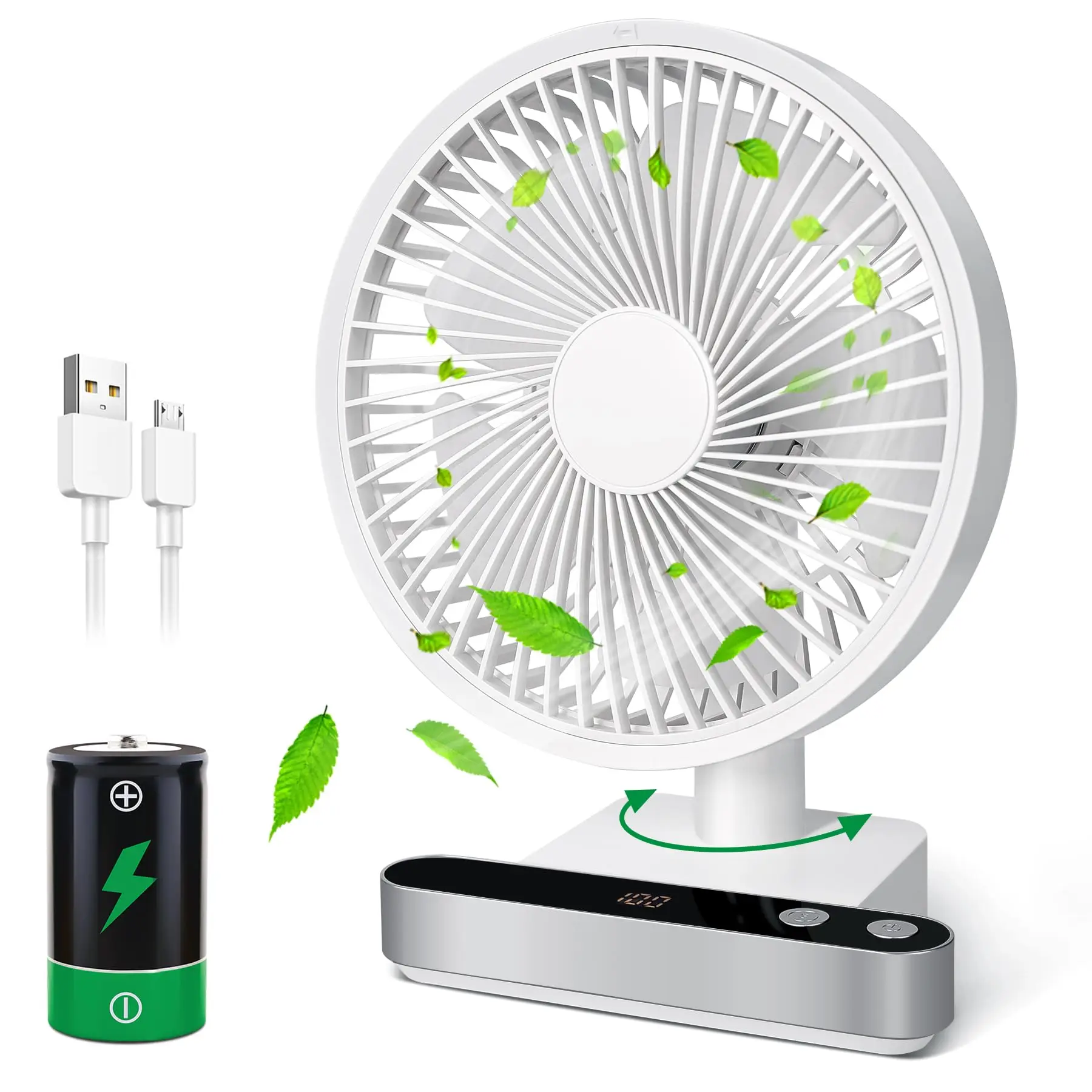 진동 데스크 선풍기 4000mAh 배터리 전원 USB 충전식 소형 개인 조용한 테이블 휴대용 LED 포함 4 속도