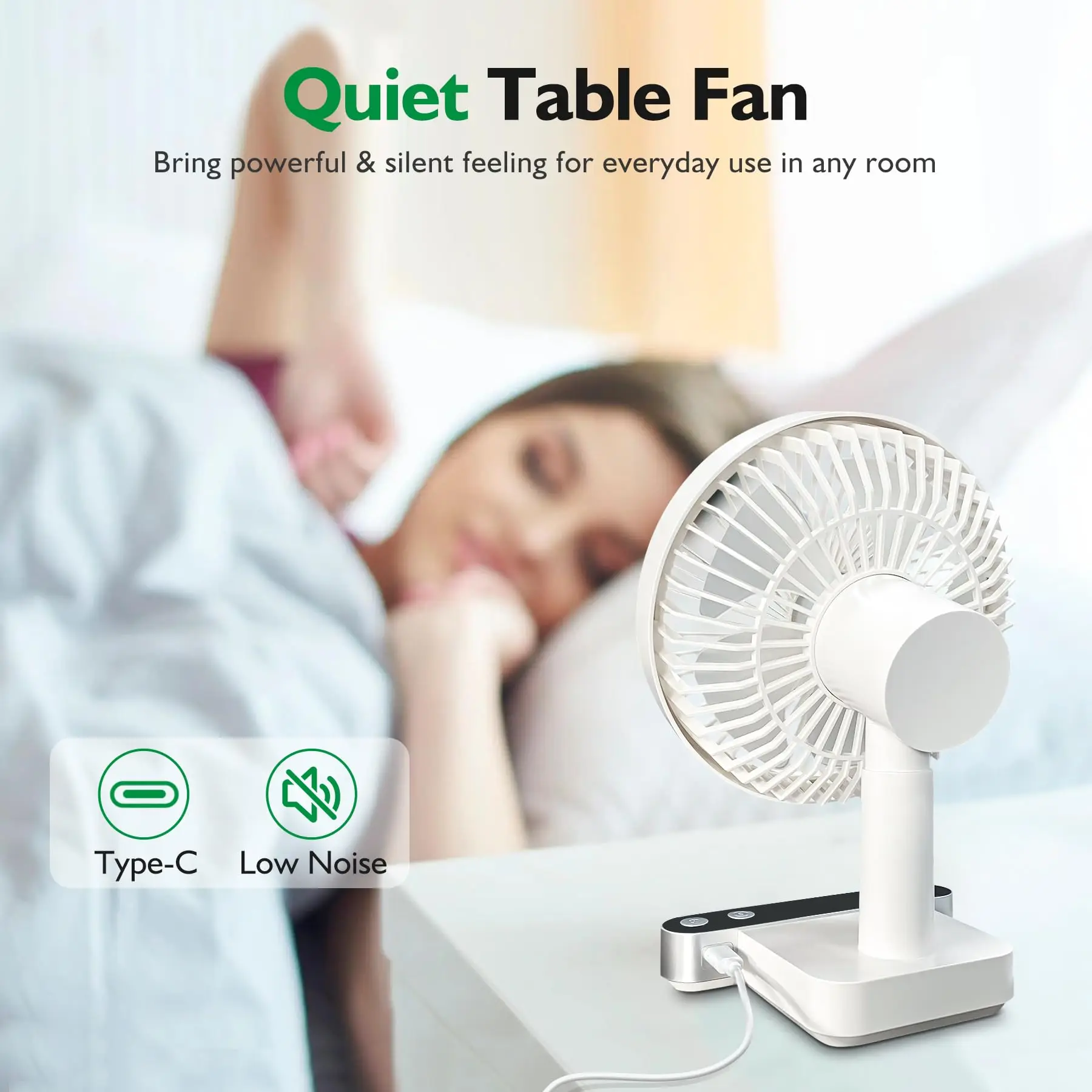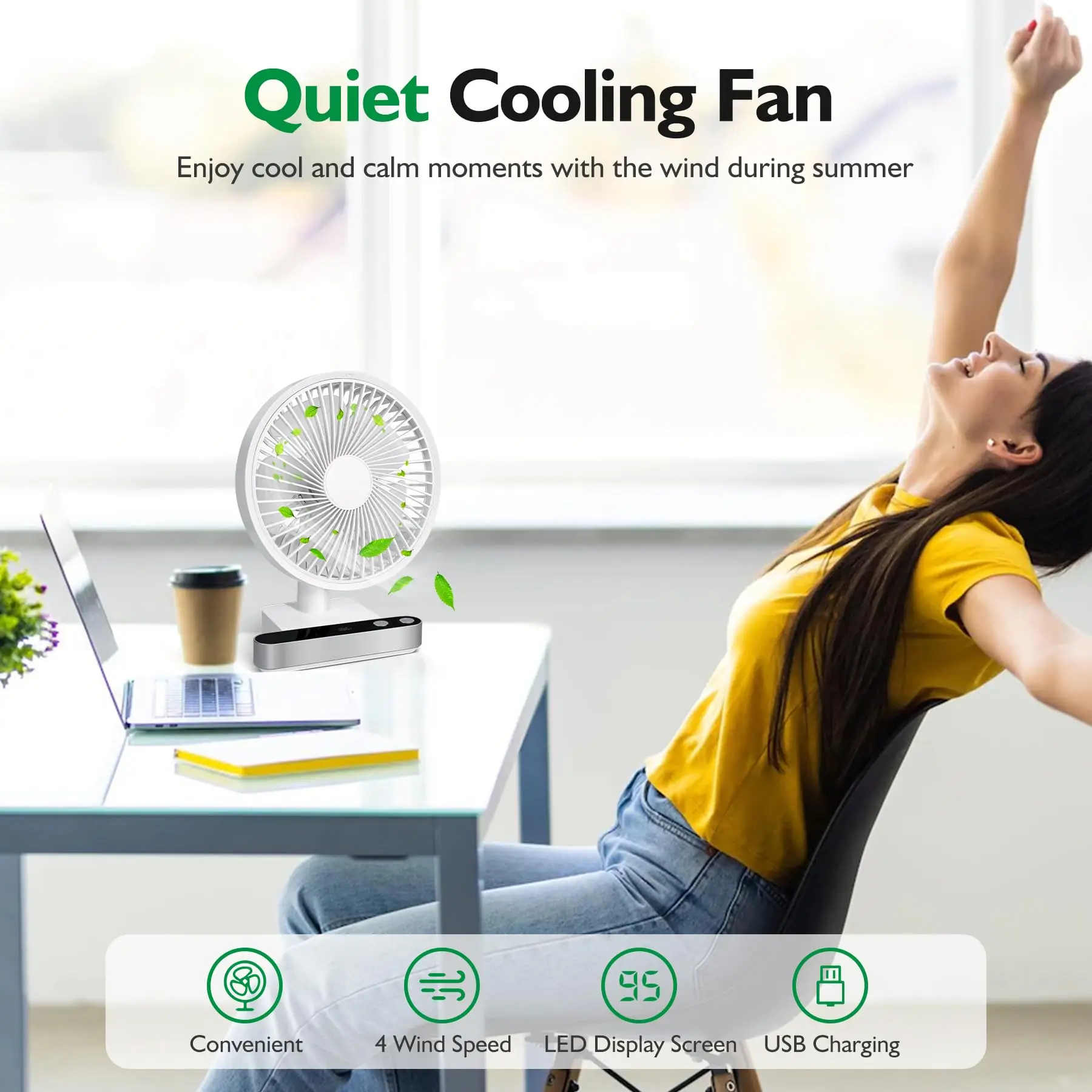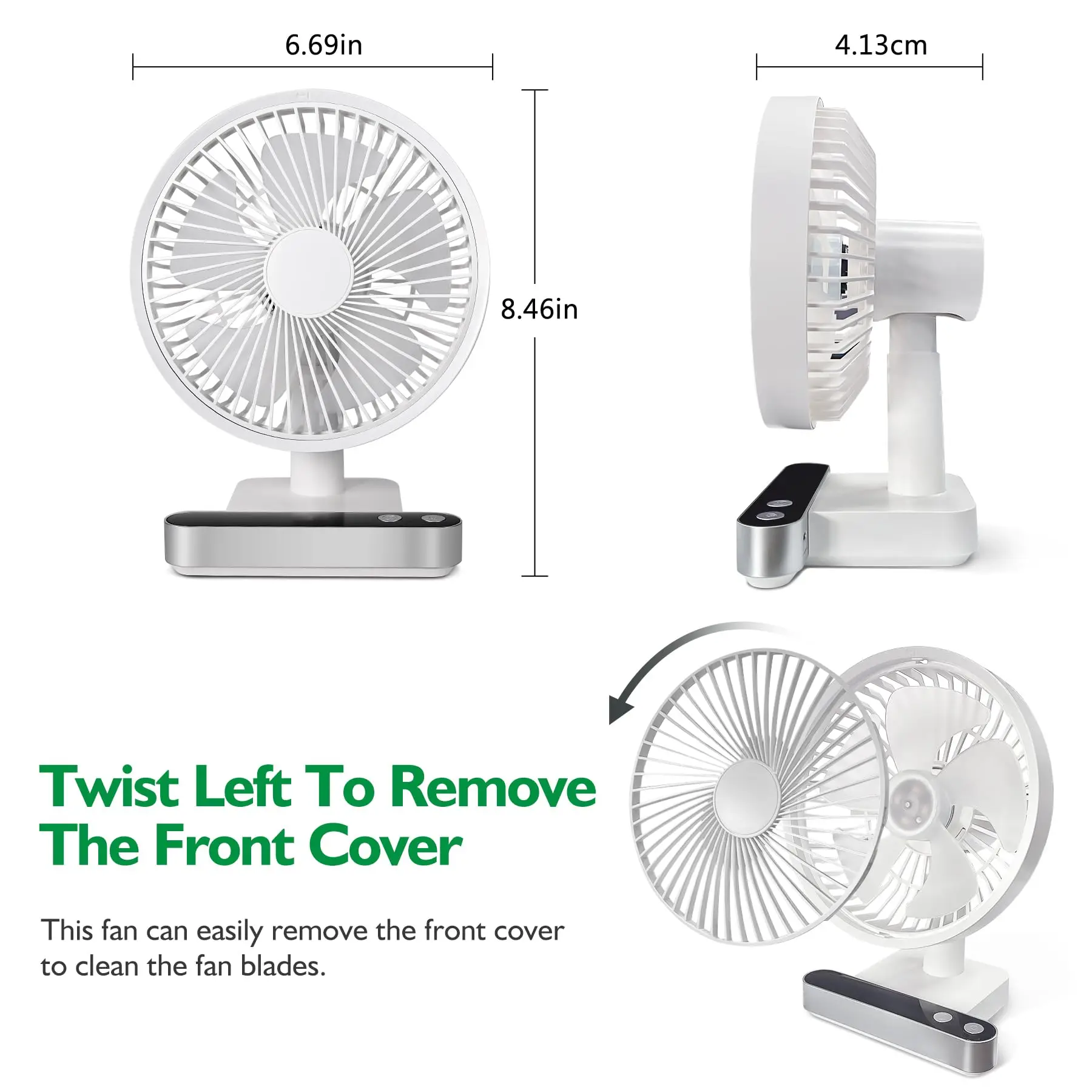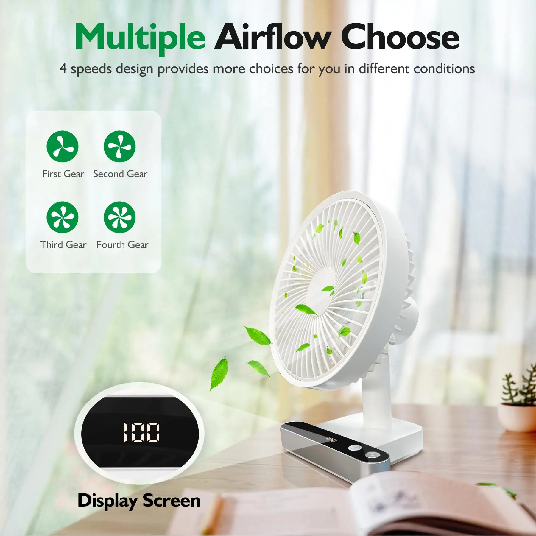 진동 데스크 선풍기 4000mAh 배터리 전원 USB 충전식 소형 개인 조용한 테이블 휴대용 LED 포함 4 속도