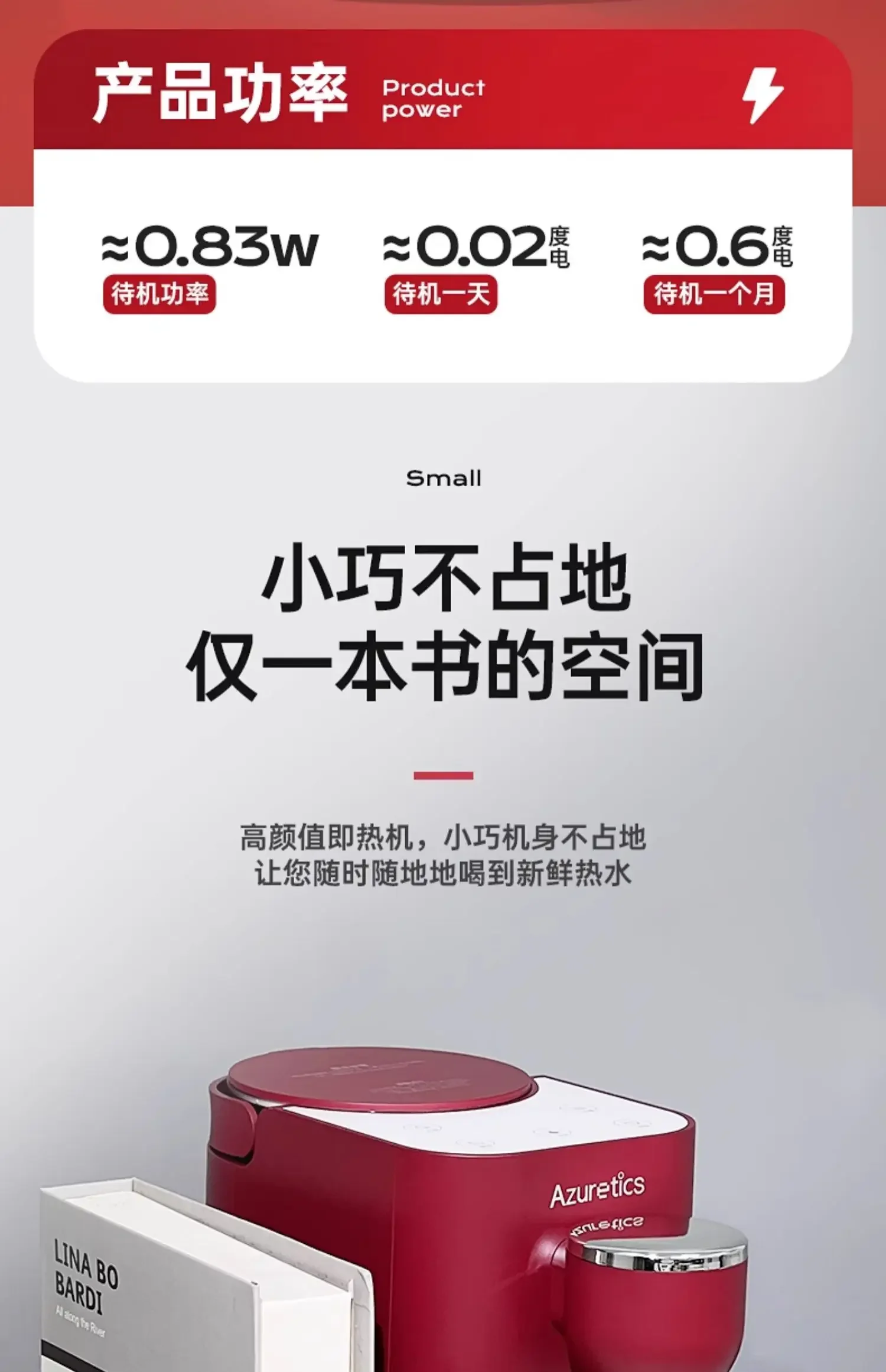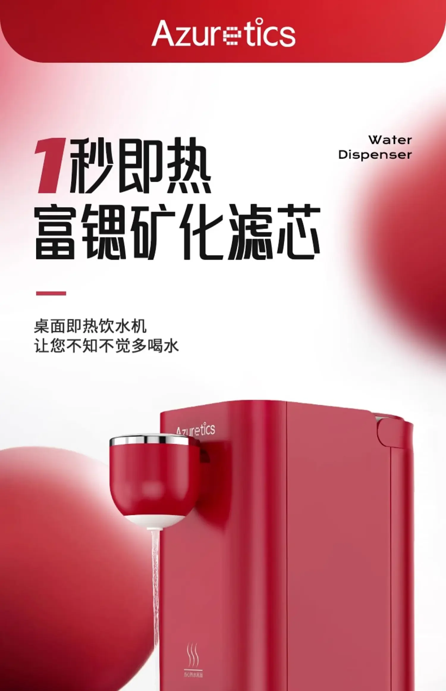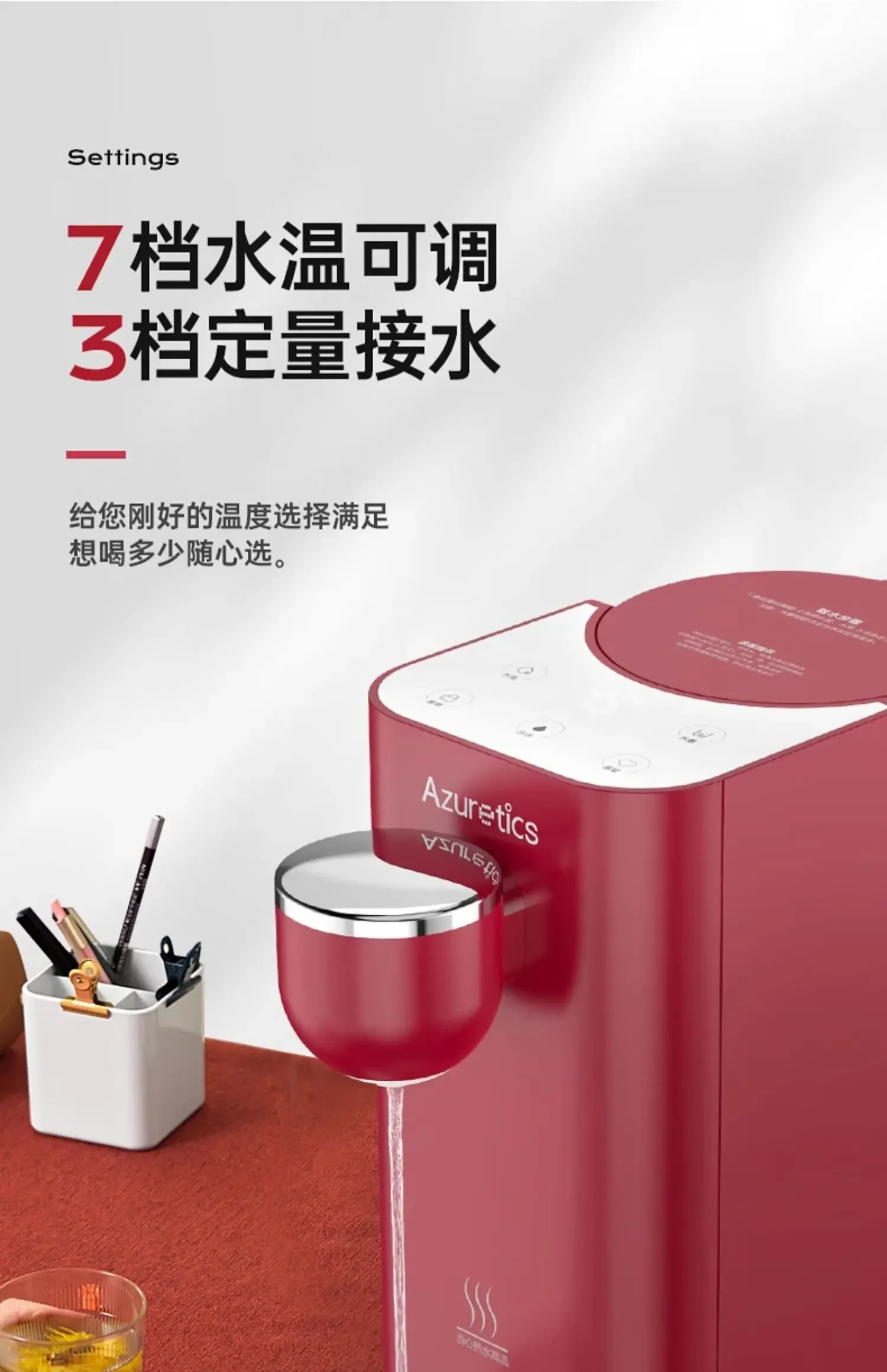 Azuretics 컴팩트 레드 워터 디펜서 가정 사무실용 인스턴트 온수 기능 포함 220V