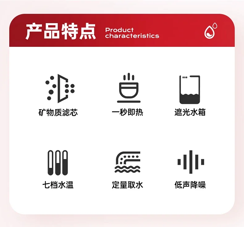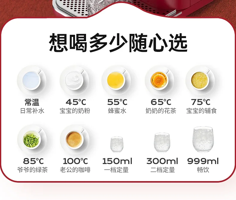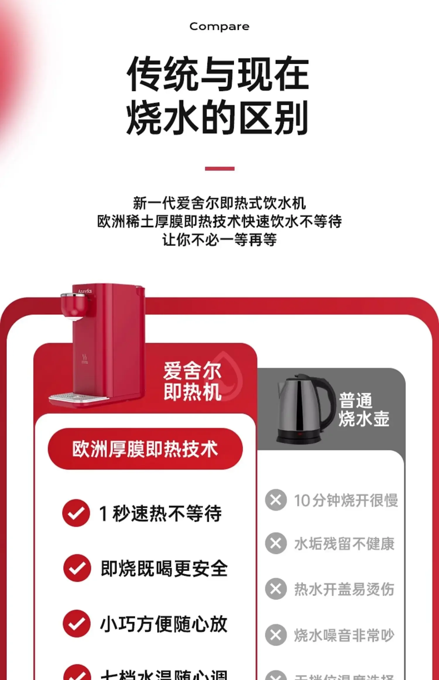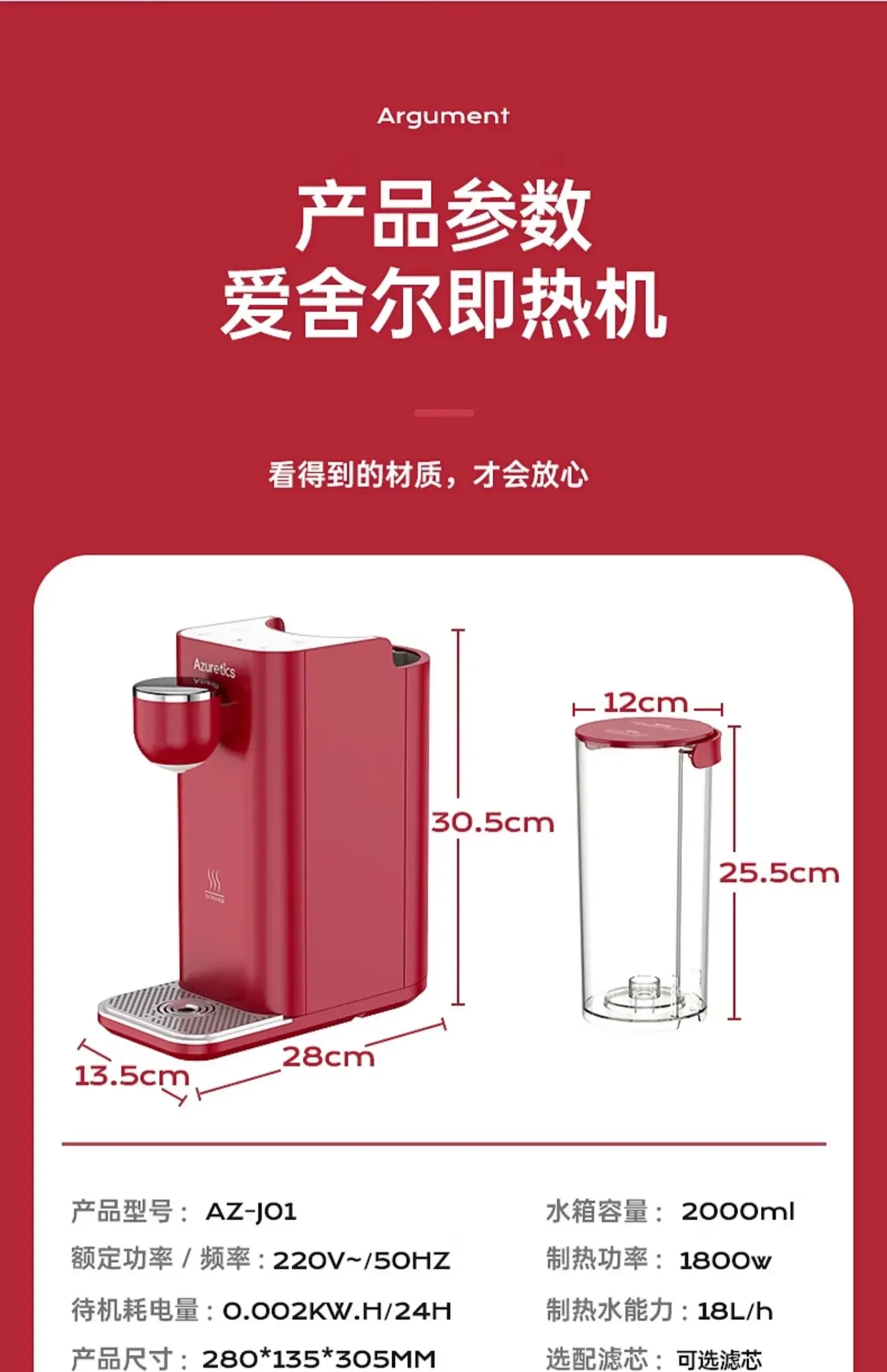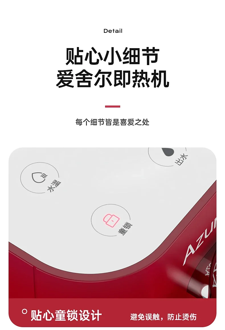 Azuretics 컴팩트 레드 워터 디펜서 가정 사무실용 인스턴트 온수 기능 포함 220V