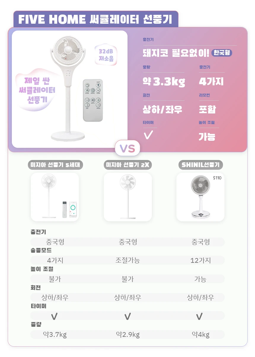 FIVE HOME 서큘레이터 선풍기 에어순환 팬/ 버전/ 3D회전/ 저소음/ 리모컨 포함/ 아이 모드/ 풍력/ 에어컨