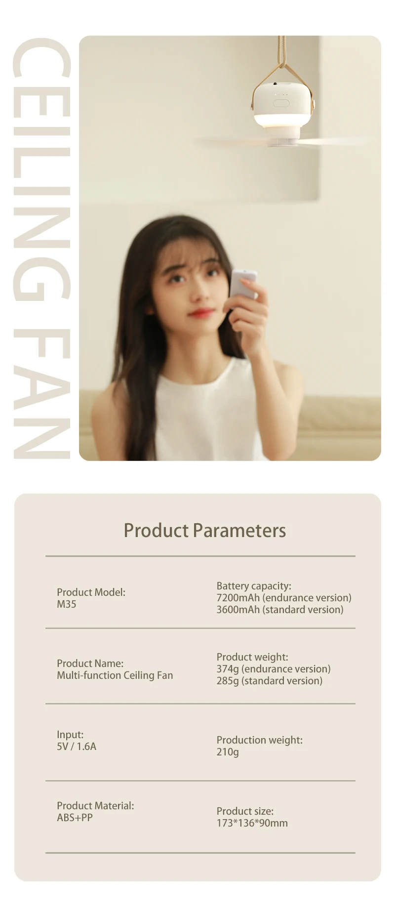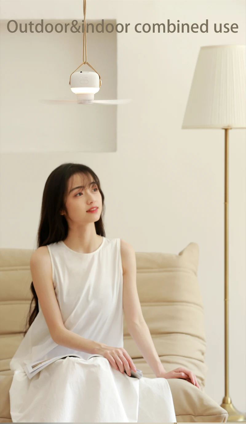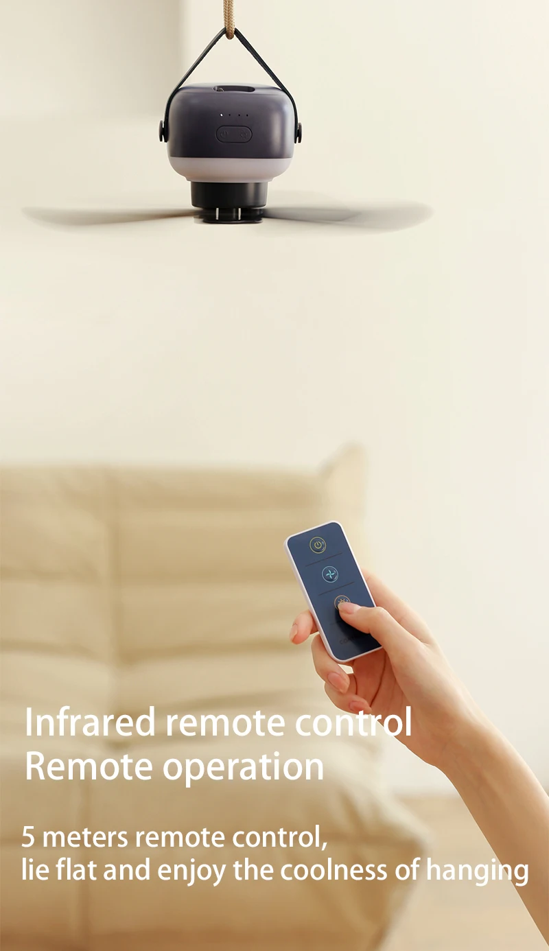 캠핑 팬 충전식 데스크탑 휴대용 서큘레이터 무선 천장 선풍기 보조베터리 LED 조명 원격 제어