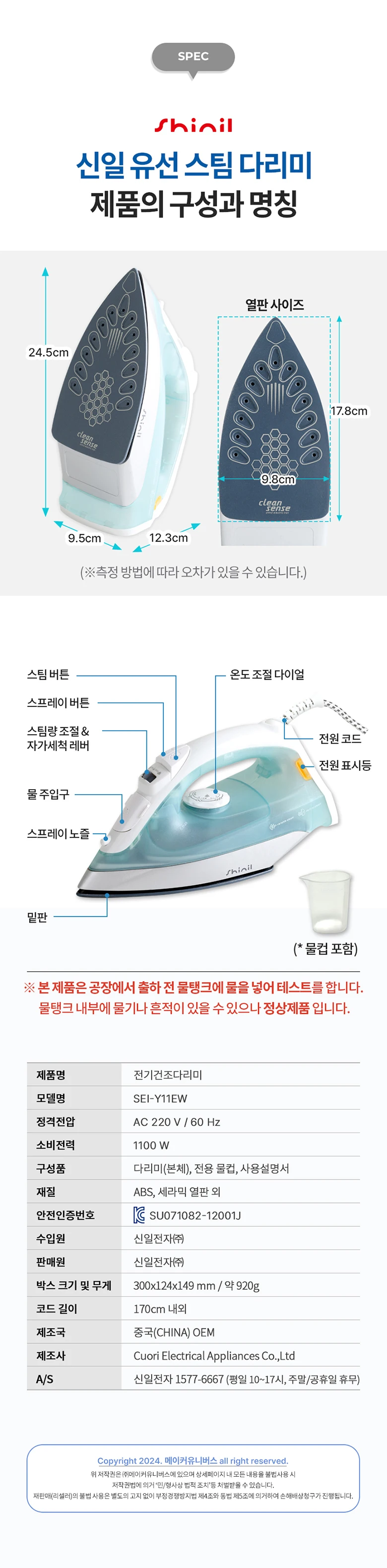 신일 다리미 기본형 유선다리미 건식다리미 스팀다리미 다리미추천 가성비 SEI-Y11EW