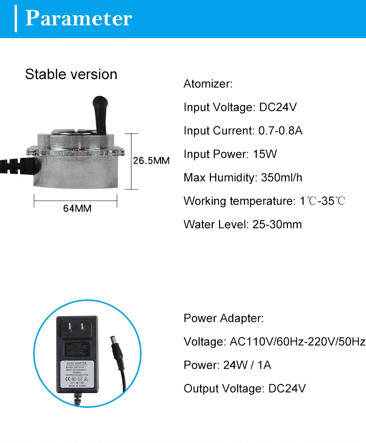 초음파 산업 미스트 메이커 분무기 전원 공급 장치 포함 스테인리스 스틸 가습기 바위 연못 1 헤드 350 ml/