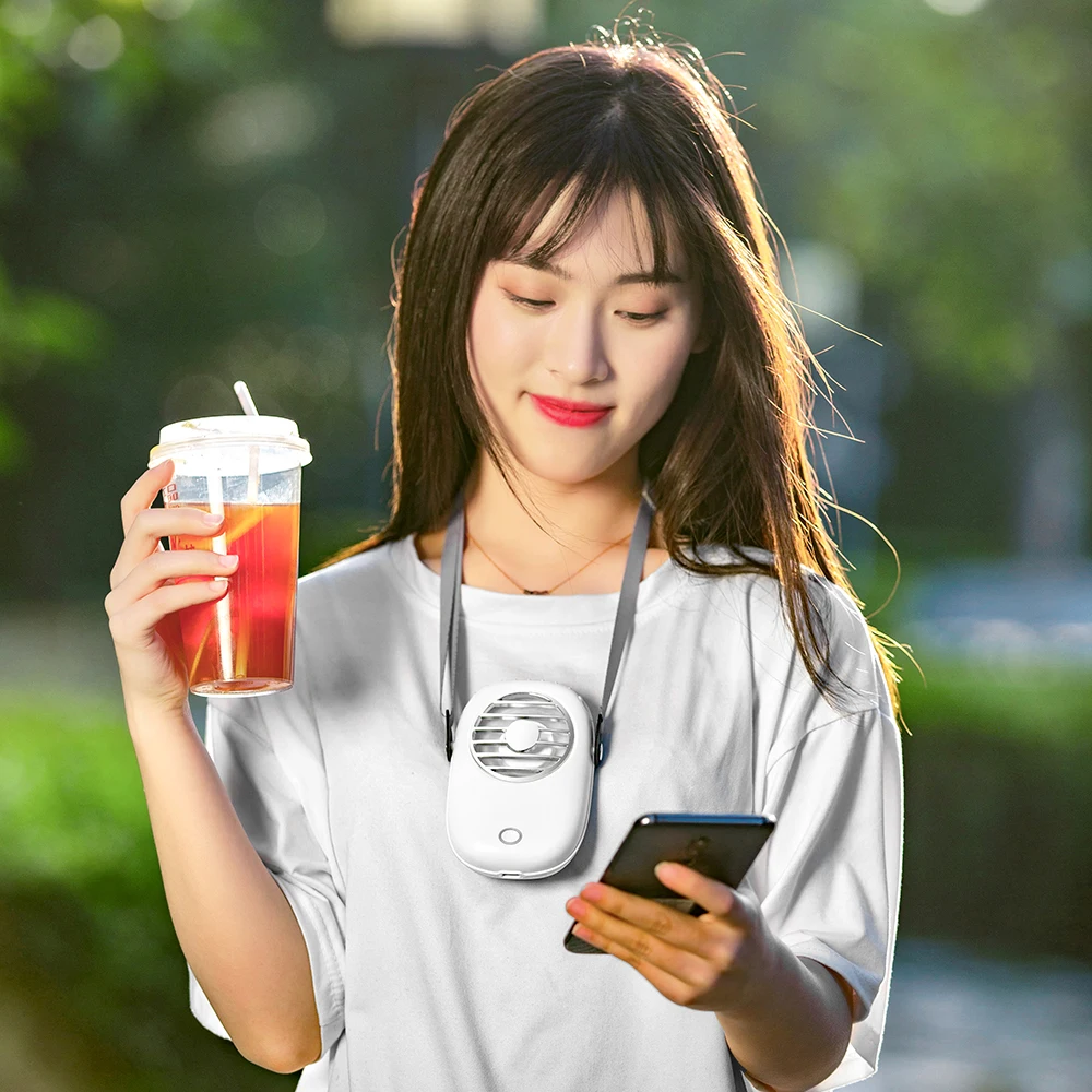 휴대용 레이지 행잉 목 선풍기 미니 냉각 팬 USB 1200mAh 충전식 스포츠 야외 여행용