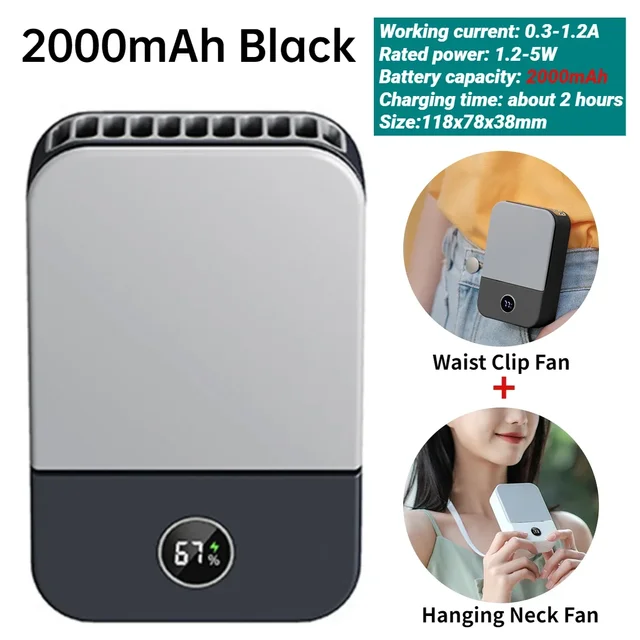 잎없는 미니 클립 팬 목 허리 팬 공기 냉각 USB 3 단 속도 팬 휴대용 공기 냉각기 충전식 야외 개인 팬