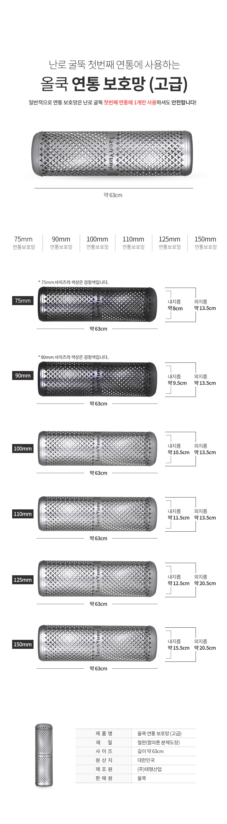 앞뒷바퀴세트 올쿡 고급 물받이 보호망 연통 150mm