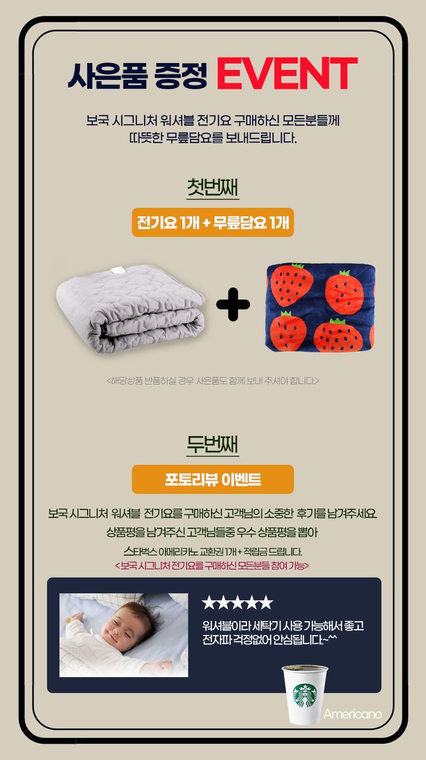 대구백화점 보국국산 에어셀 워셔블 EMF인증 전기요(BKB-3602D)