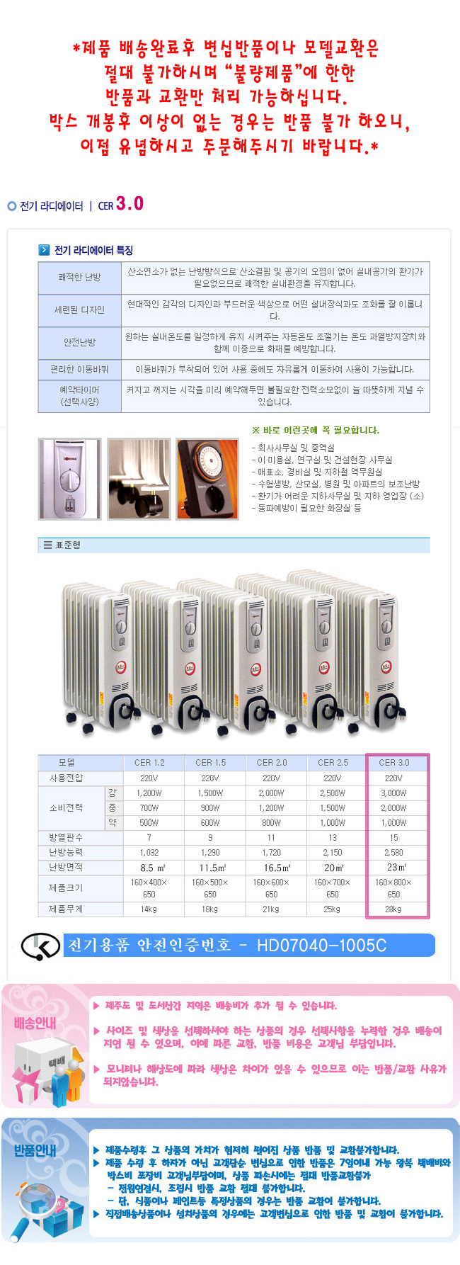 (현대Hmall)강남기업 전기라디에이터 CER 3.0 (약19㎡∼26㎡)
