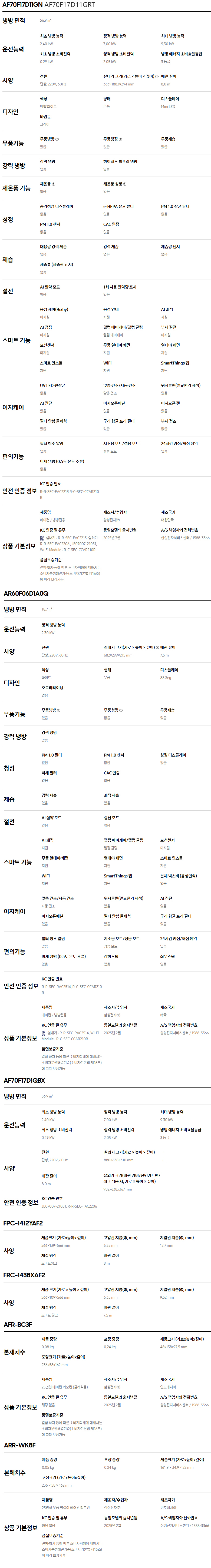 삼성 AF70F17D11GRT 25년형 무풍 클래식 56.9+18.7 리모컨 실외기 기본설치비포함