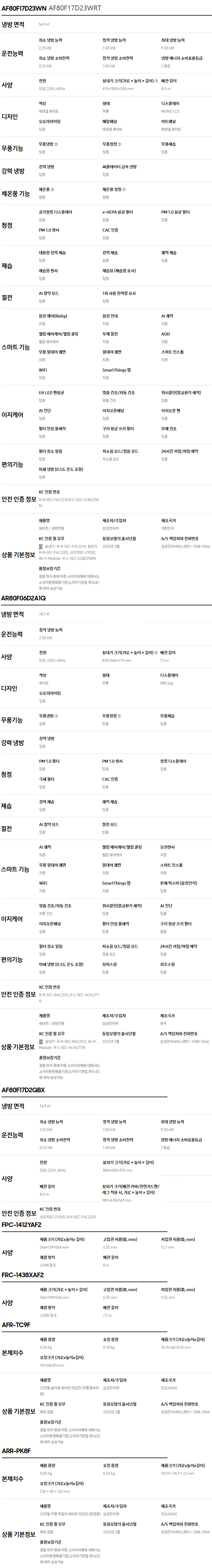 삼성 AF80F17D23WRT 25년형 무풍콤보 갤러리 청정 56.9+18.7 리모컨 실외기 기본설치비포함
