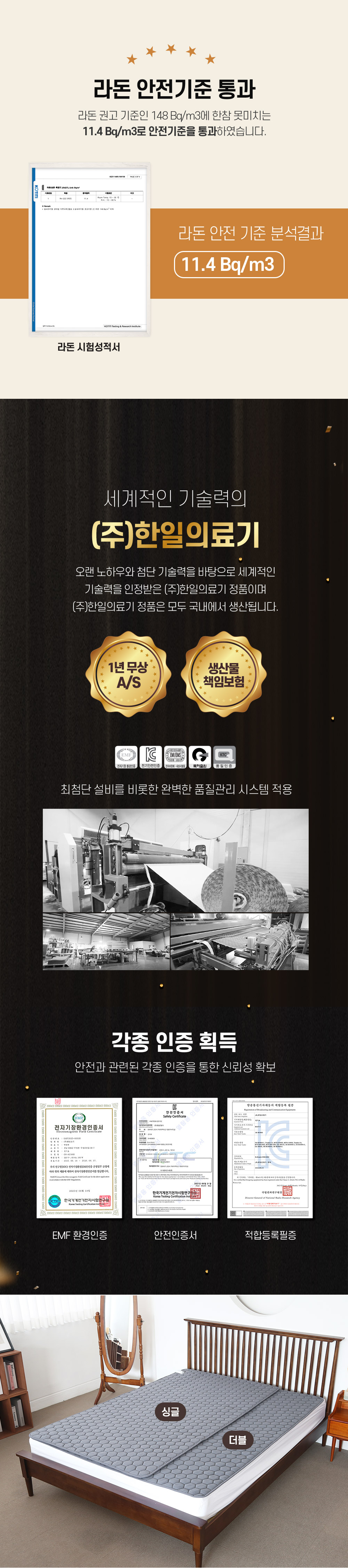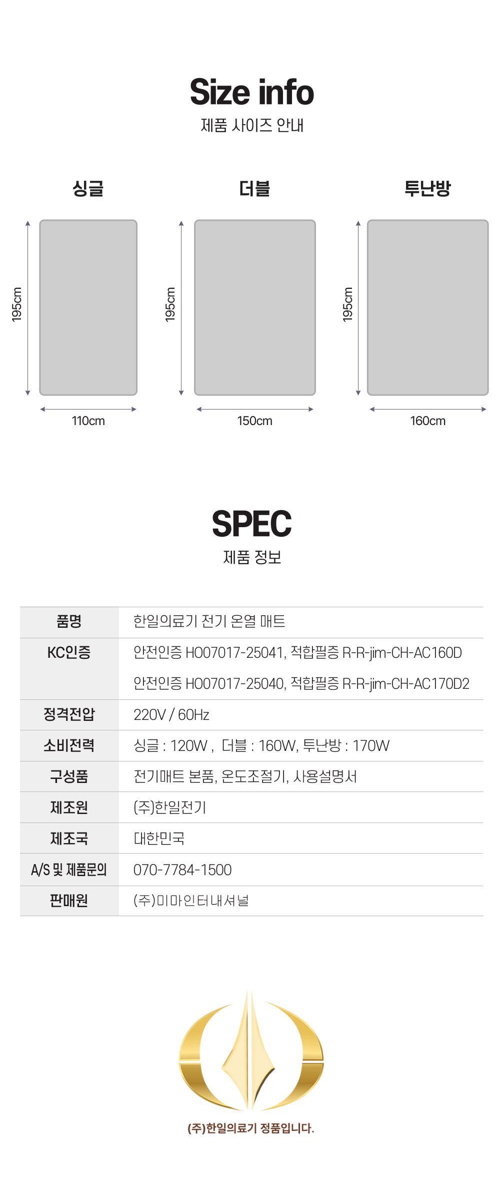 한일 극세사 2난방 더블탄소매트 전자파없는전기장판 온열매트 투난방