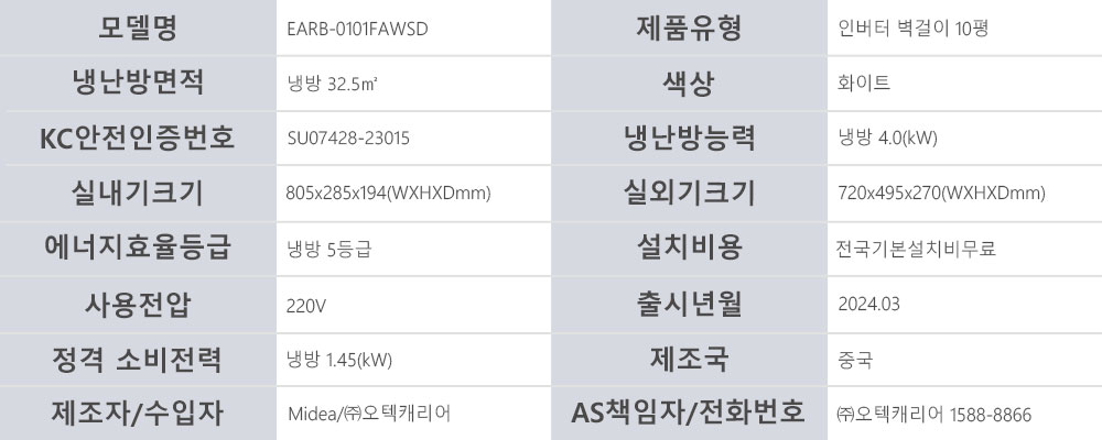 인버터 벽걸이에어컨 EARB-0101FAWSD (32.5㎡) 전국기본설치비 포함