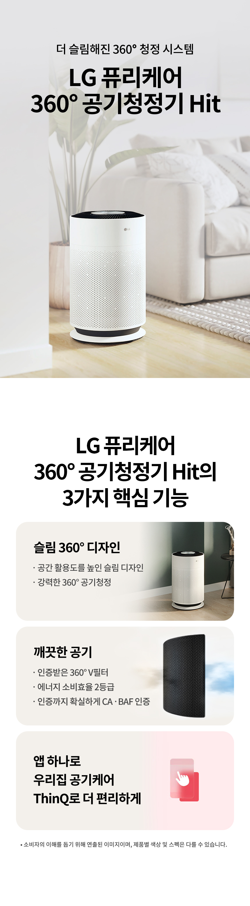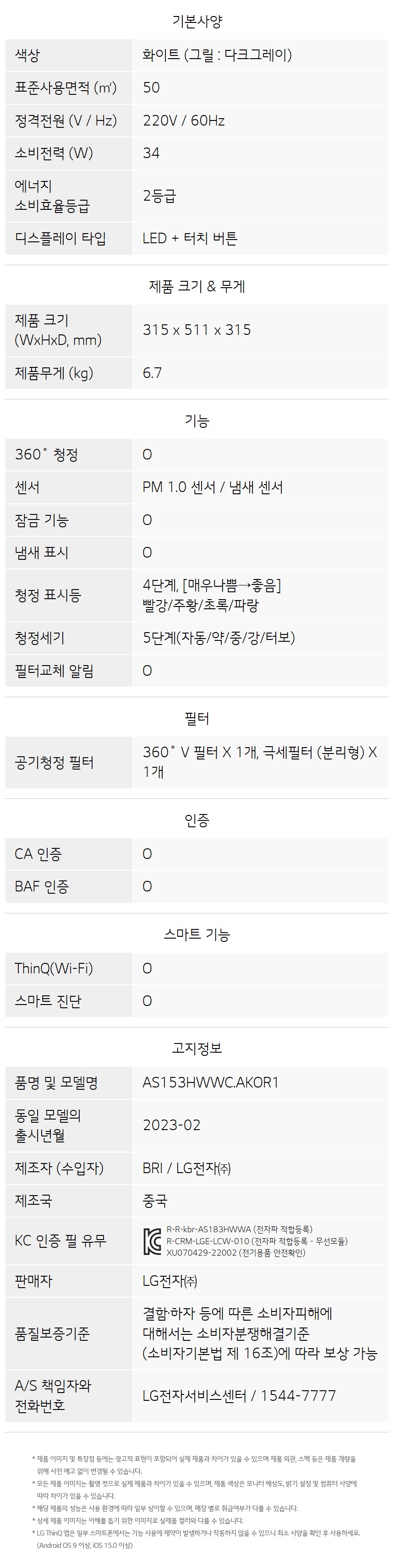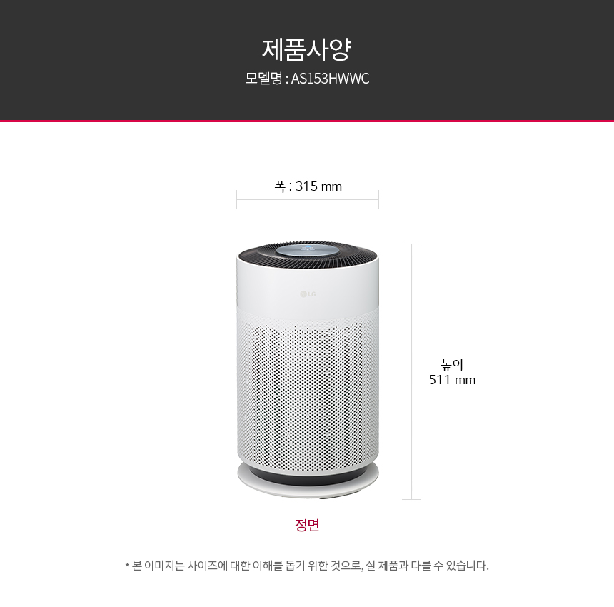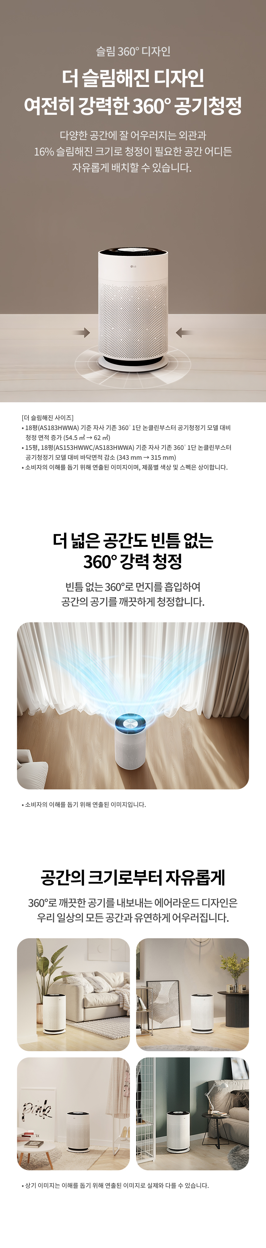 LG 퓨리케어 360 공기청정기 AS153HWWC 슬림 디자인/원격제어