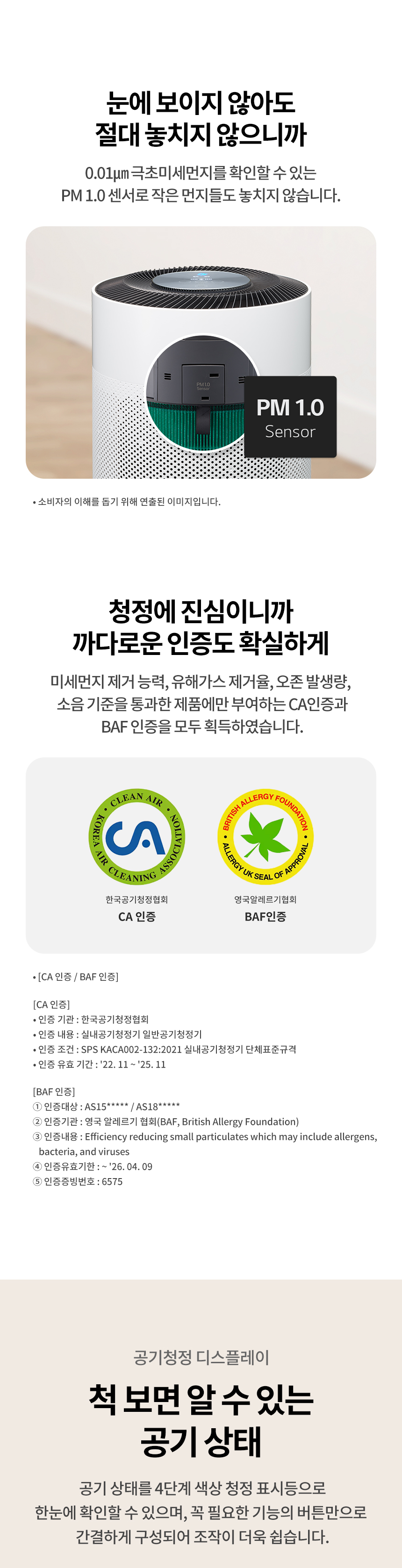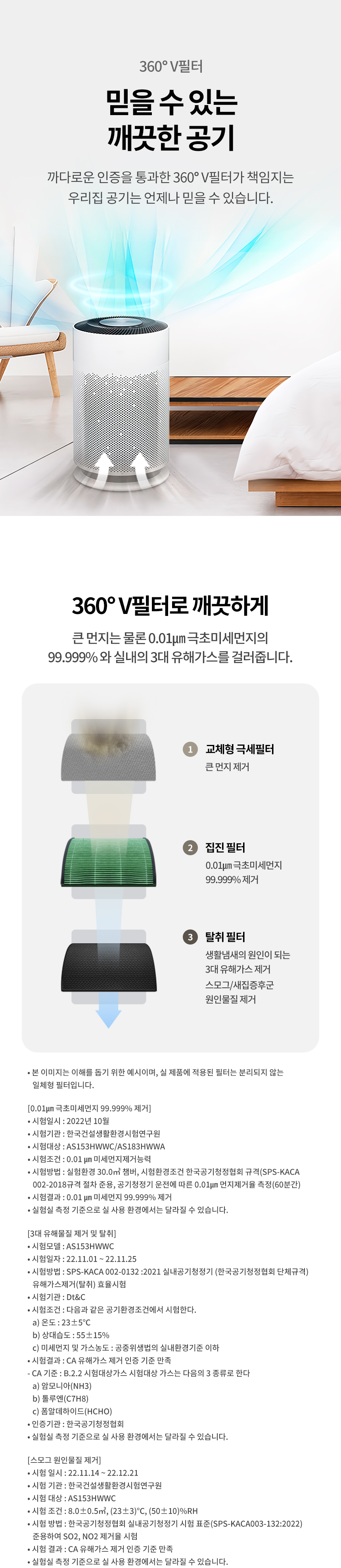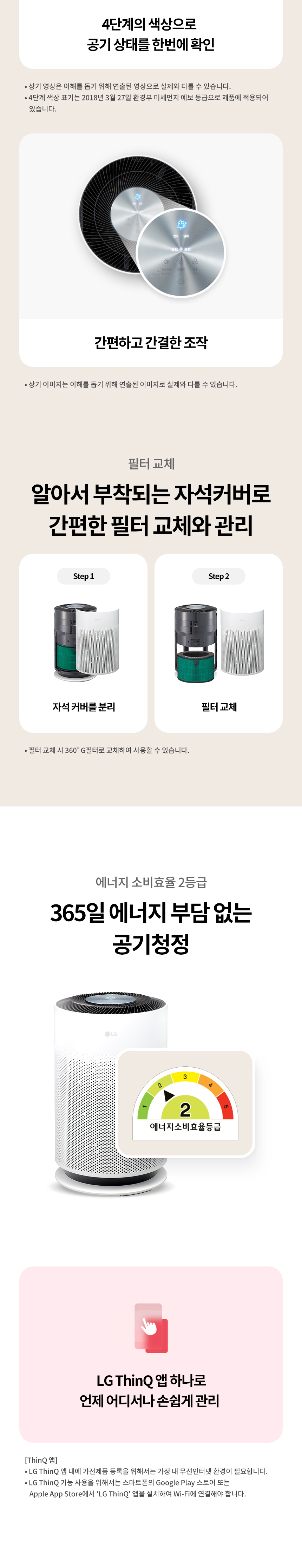 LG 퓨리케어 360 공기청정기 AS153HWWC 슬림 디자인/원격제어