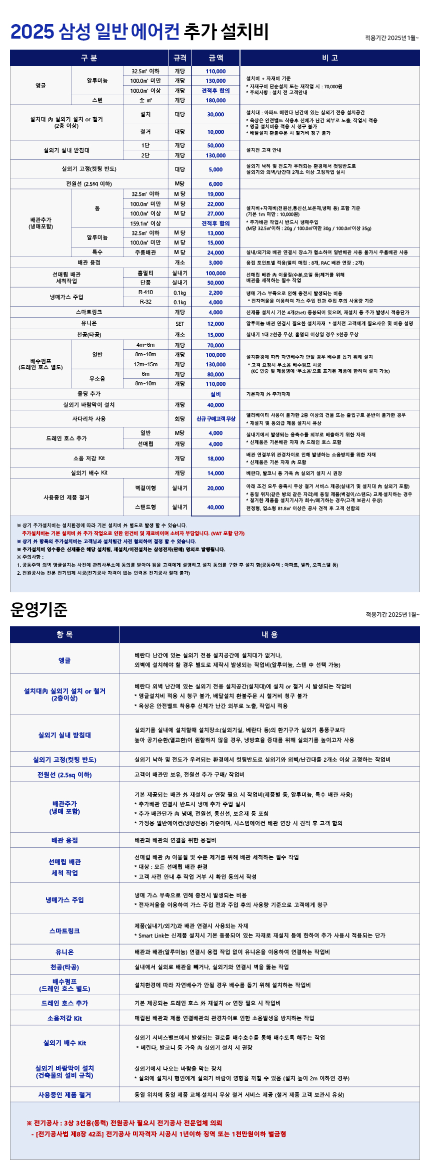 실내기(스탠드), 실외기, 리모컨 1개, 사용설명서, 설치자재