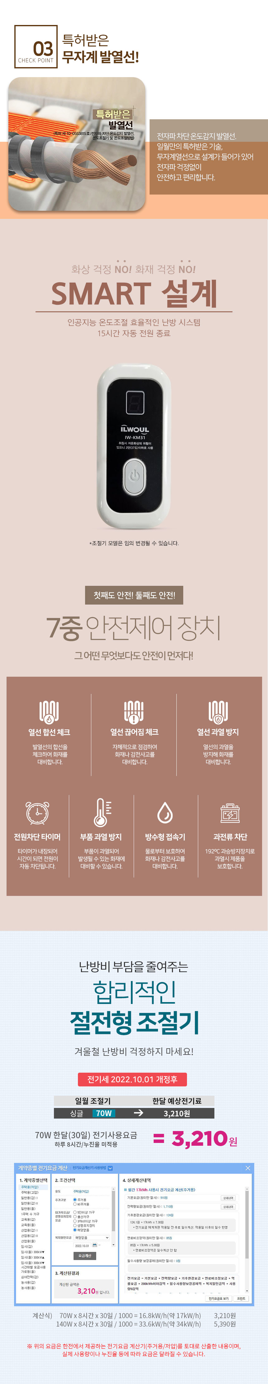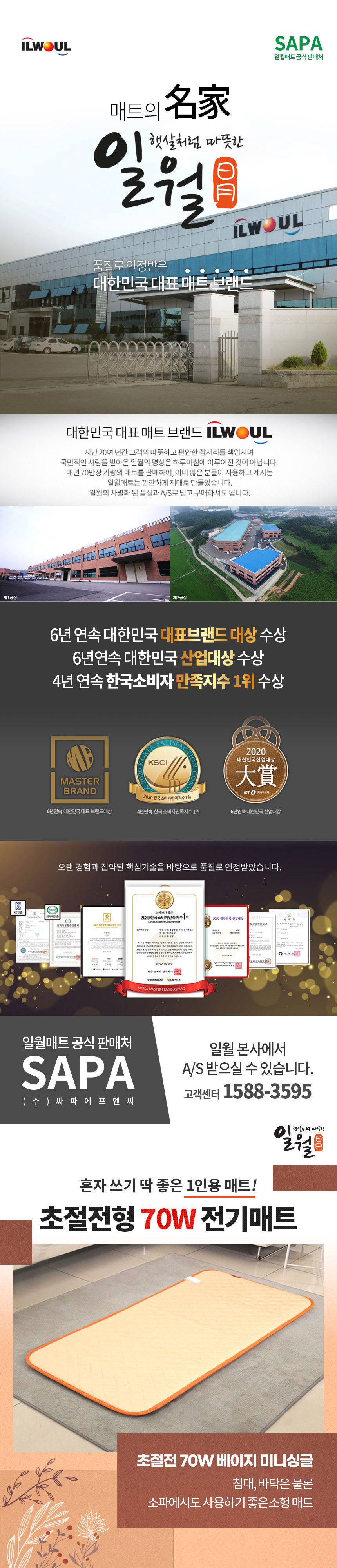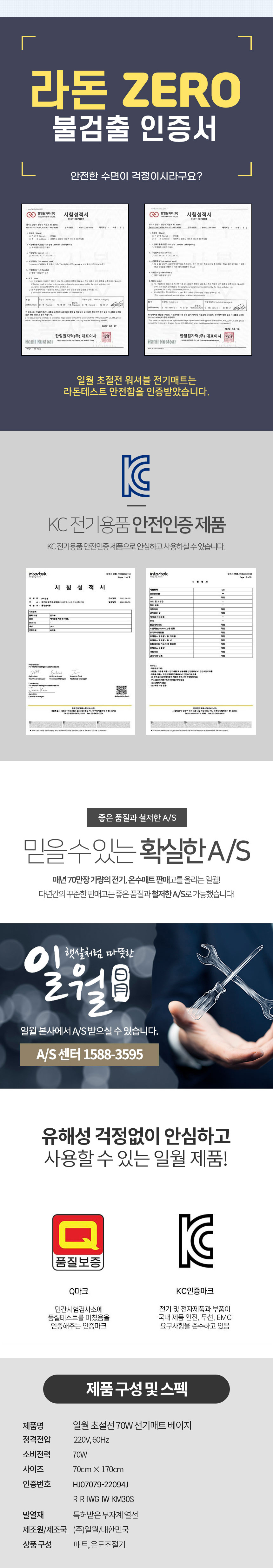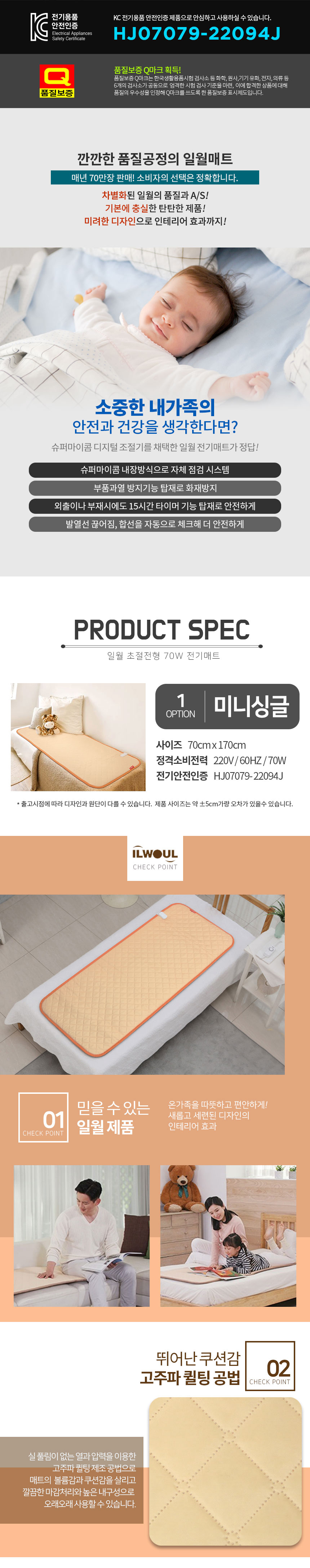 일월_ 초절전 70W 전기매트 베이지 미니싱글 1인70x170)