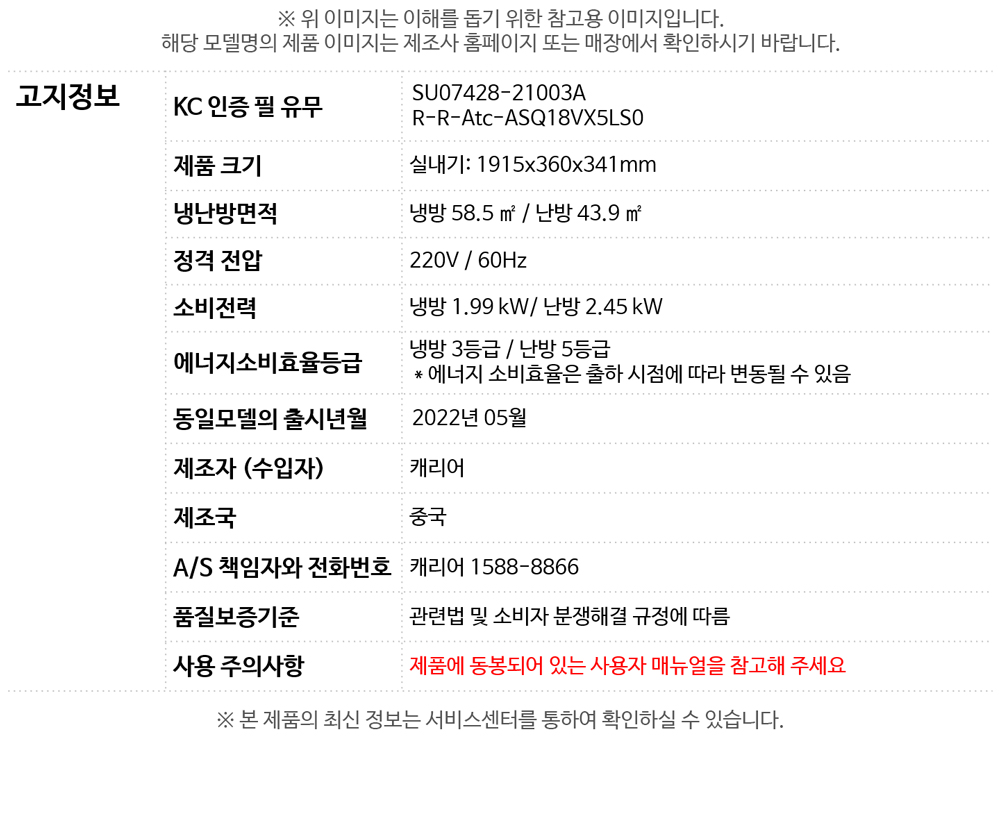 캐리어 ESQD181XAWWSD 에어로 18단 냉난방기 스탠드형 / KN