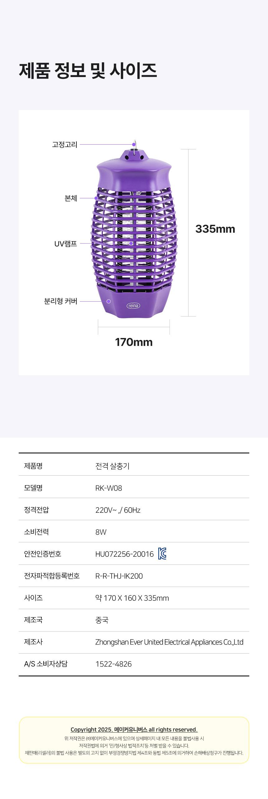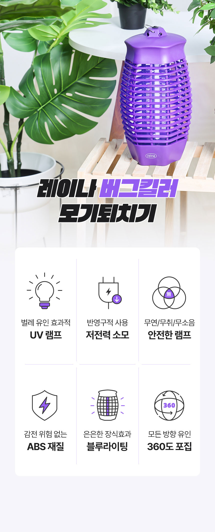 레이나 UV램프 소형 모기퇴치기 캠핑용 포충기 해충퇴치기 RK-W08