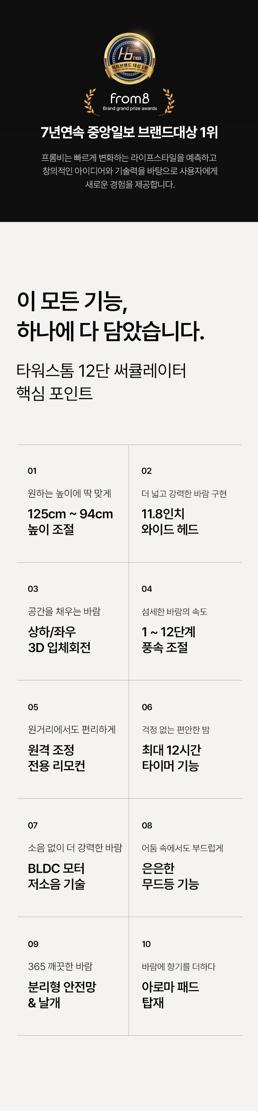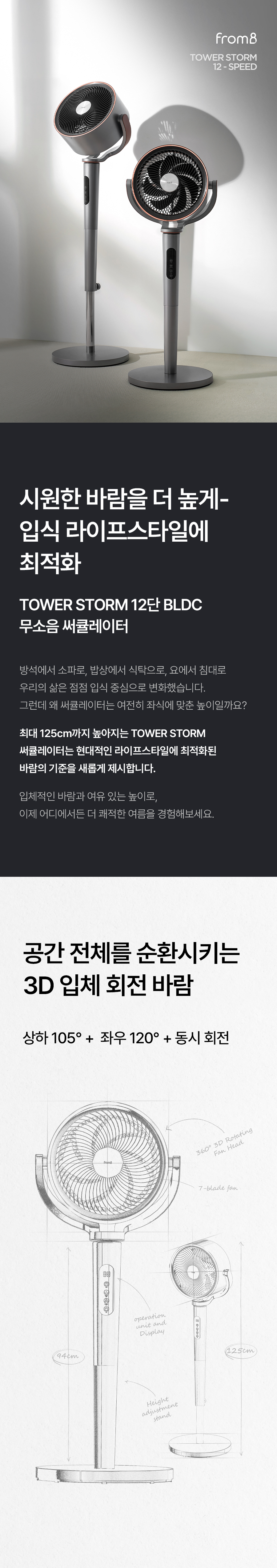 (현대Hmall)프롬비 타워스톰 12단 BLDC 무소음 써큘레이터