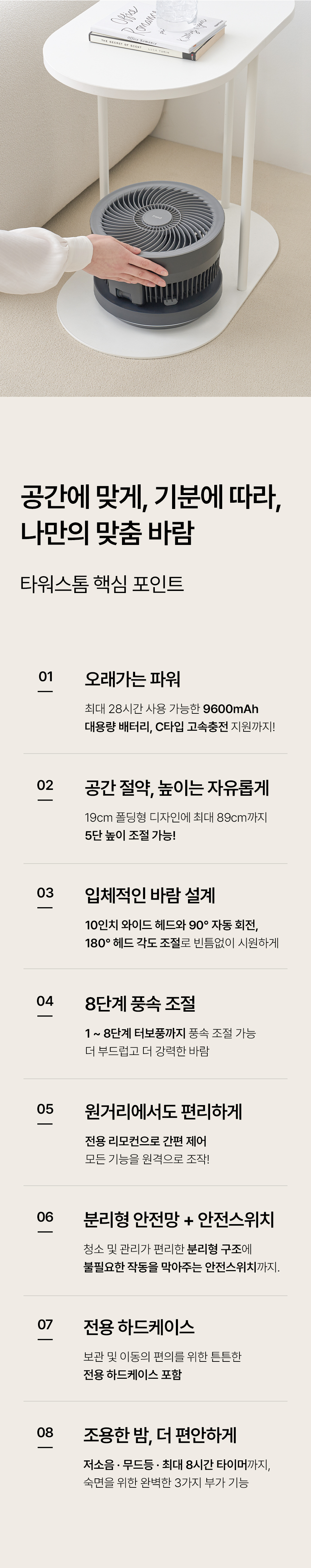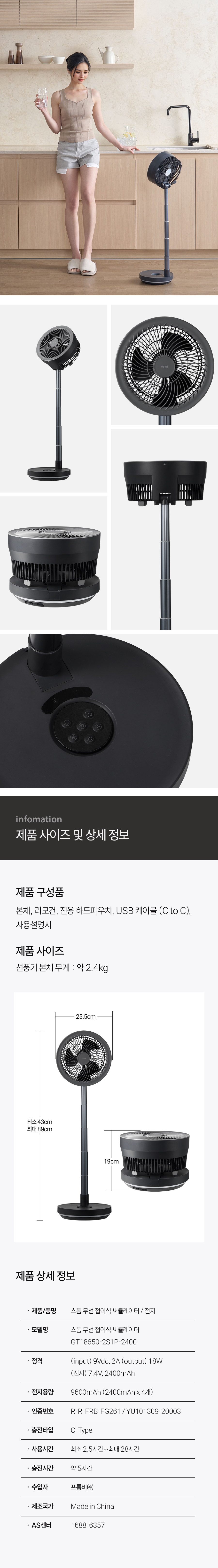 (현대Hmall)프롬비 타워스톰 접이식 무선 써큘레이터 FG261 쿨그레이
