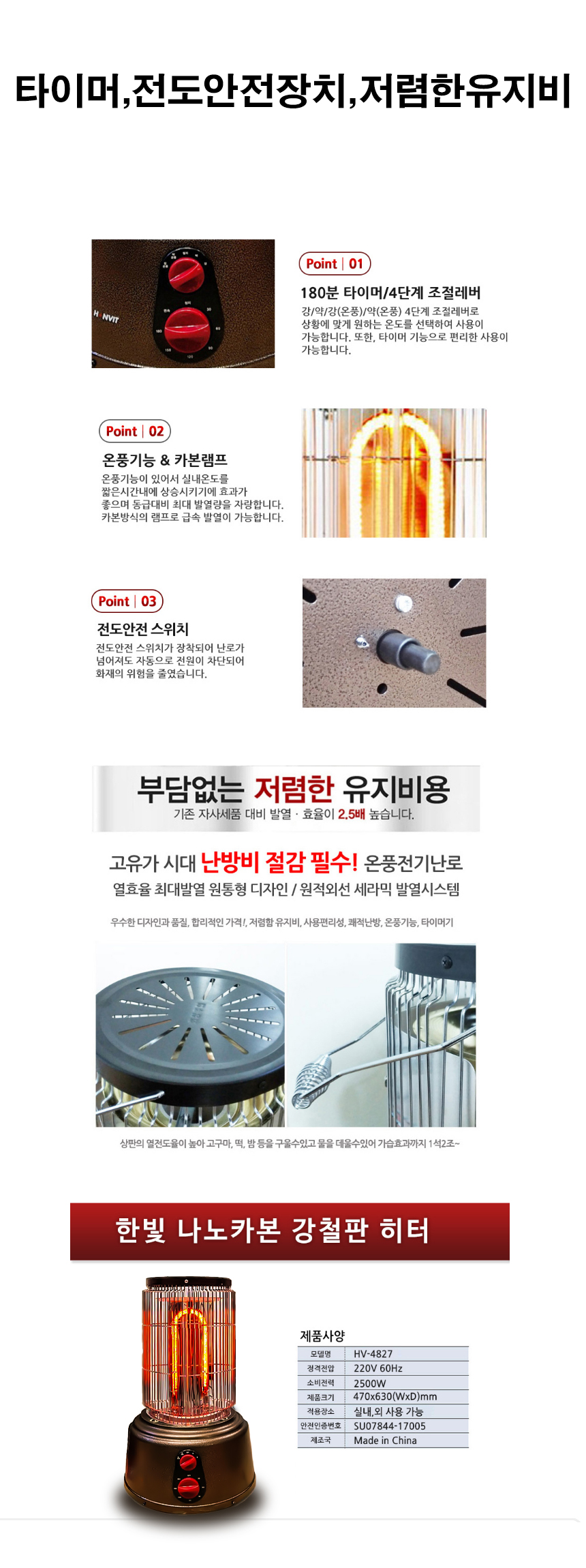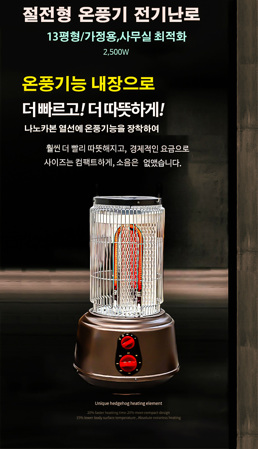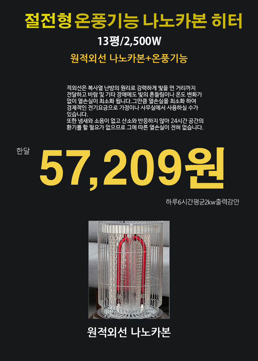절전형 13평형 나노카본 강철 전기히터 온풍기 전기난로 스토브 타이머 가정용 사무실 업소용 2.5kw