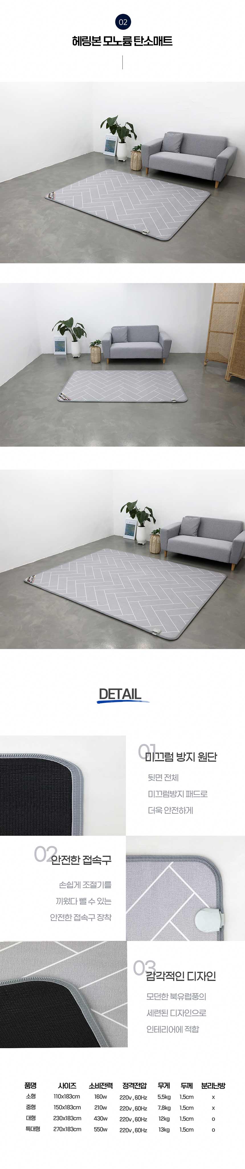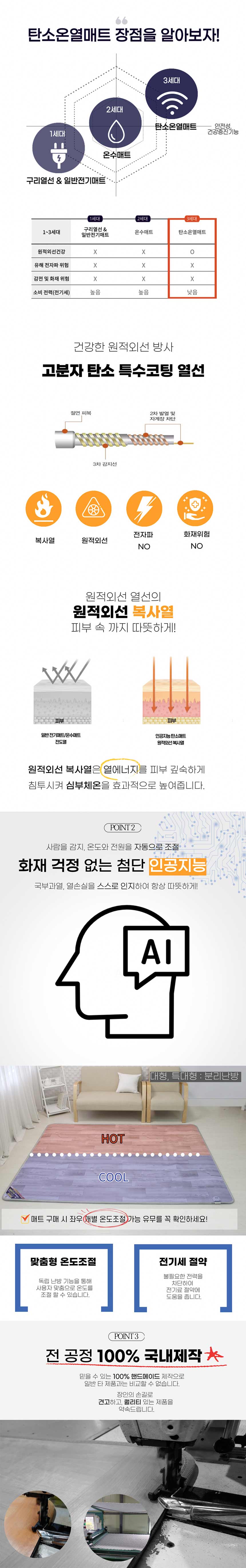 한일 국내생산 분리난방 거실용 원적외선 전자파안심 AI 해링본 모노륨 탄소 온열매트 특대형