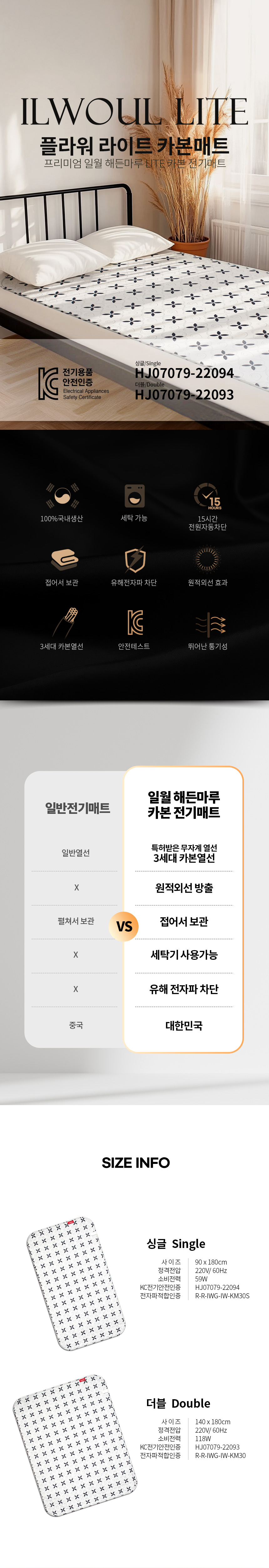 일월 해든마루 카본매트 플라워 라이트 전기매트 더블형 일월매트 전기매트