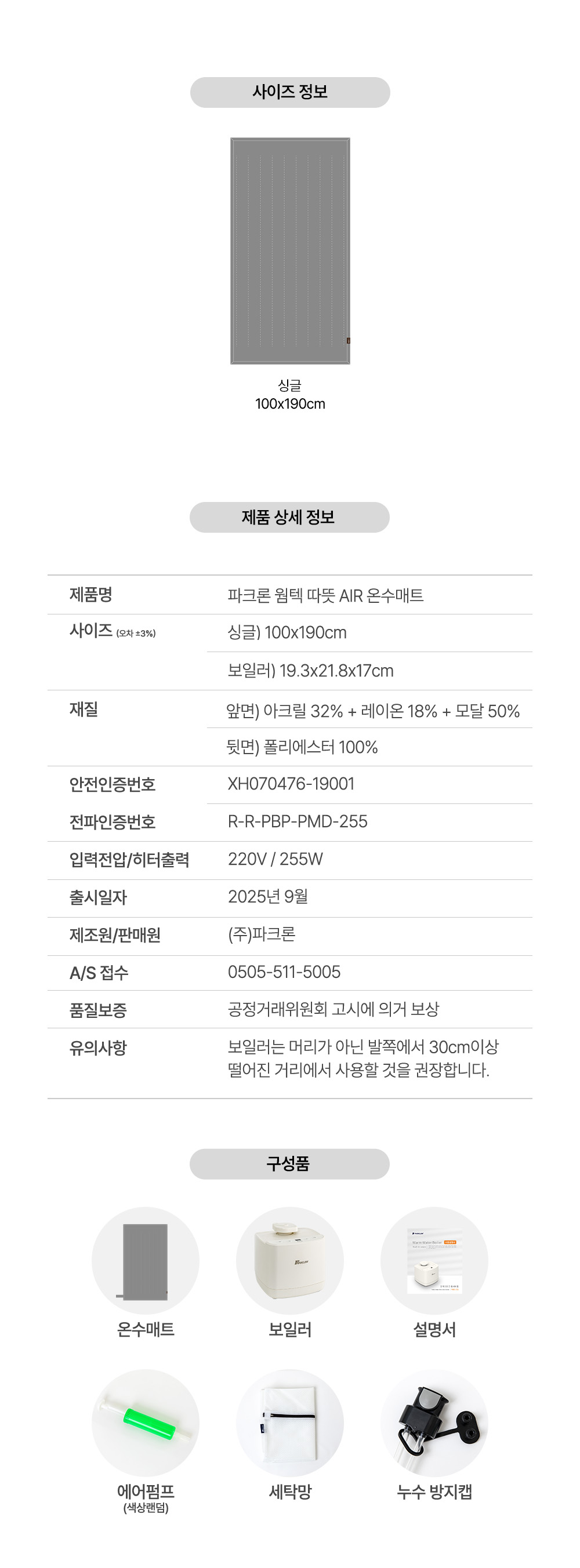 (현대Hmall)파크론 웜텍 따뜻AIR 온수매트 싱글 (100x190cm)