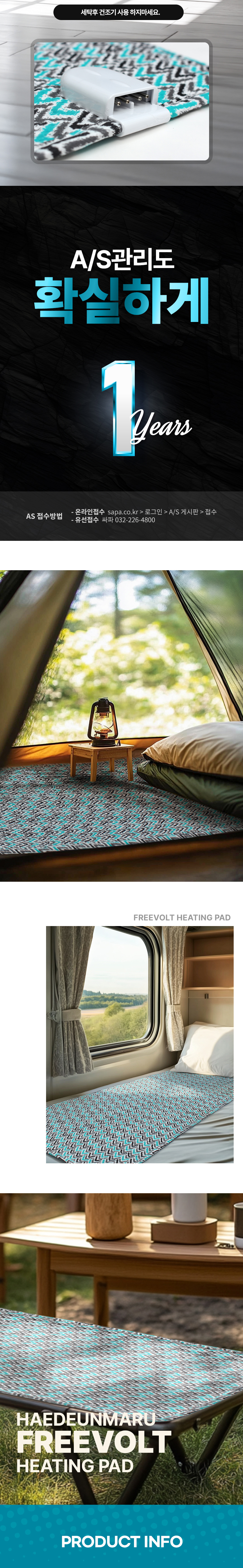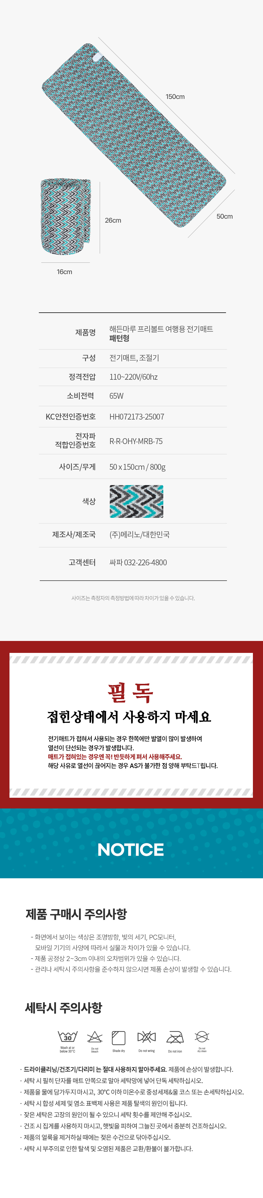 해든마루 프리볼트 휴대용 전기요 패턴형 50x150 1+1 여행용 전기매트 캠핑용 전기매트
