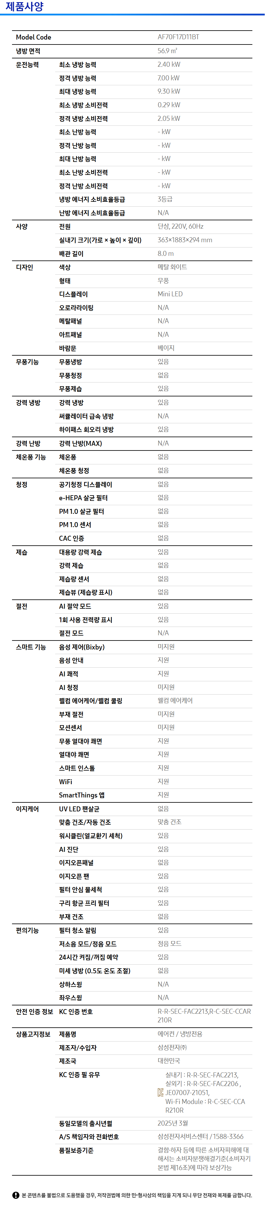 (현대Hmall)Bespoke AI 무풍 클래식 AF70F17D11BT 스탠드 에어컨 56.9㎡ (리모컨 포함) 기본설치비무