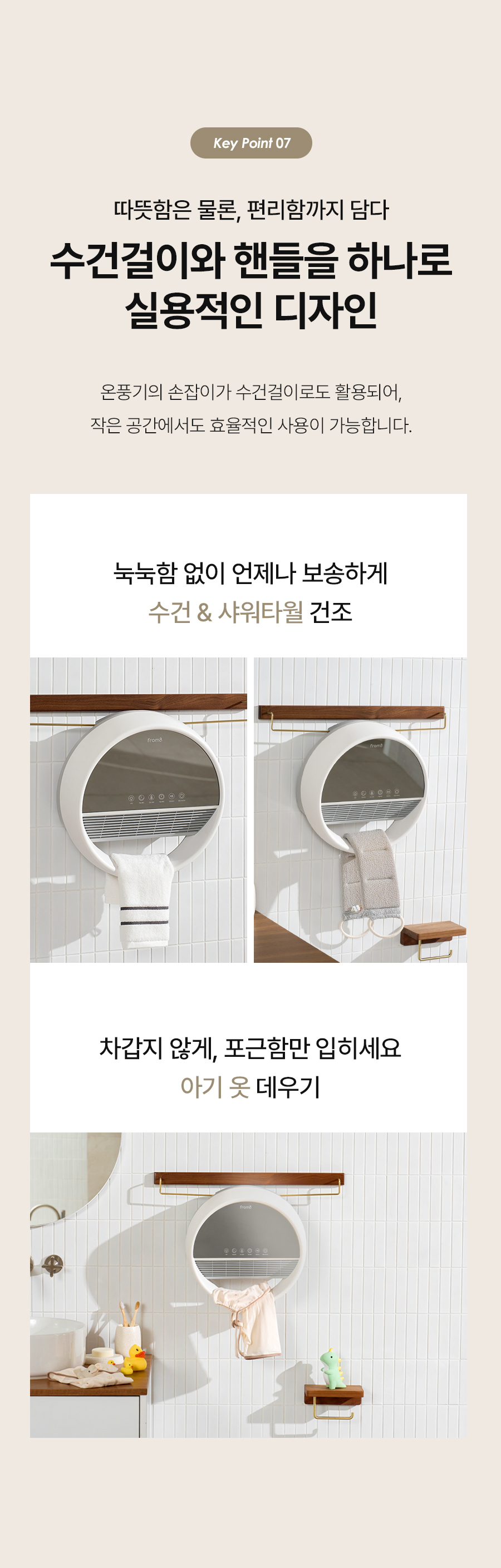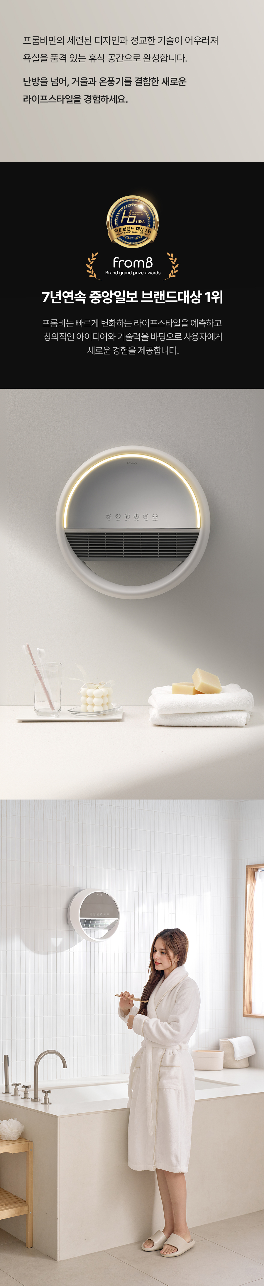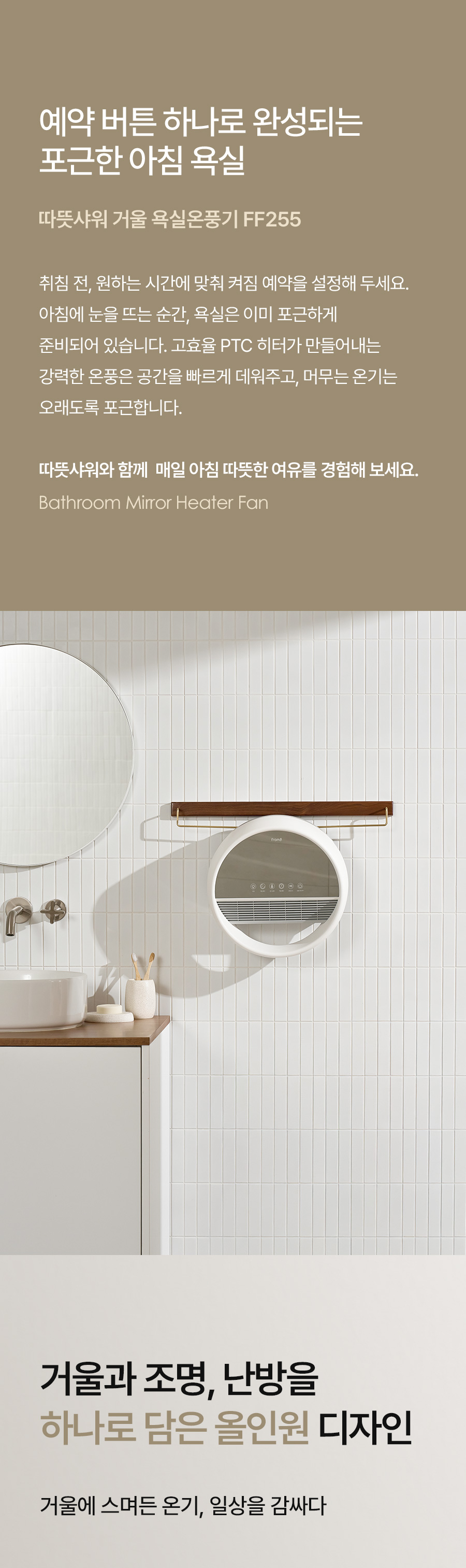 (현대Hmall)프롬비 따뜻샤워 거울 욕실 화장실 벽걸이 온풍기 FF255 무타공 무소음 난방기 미니 전자