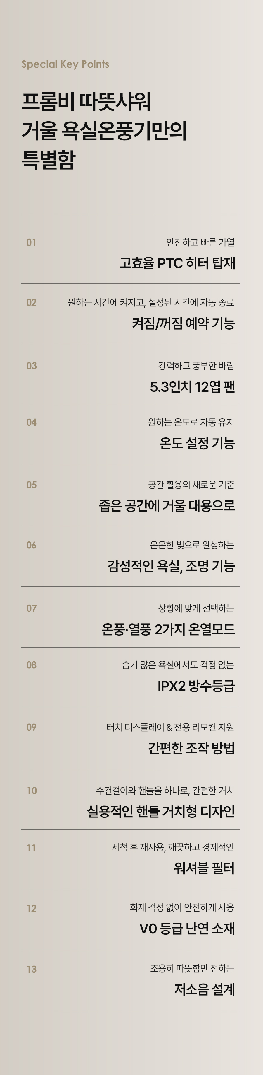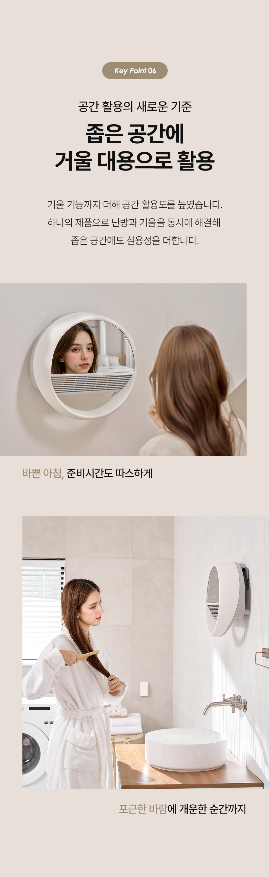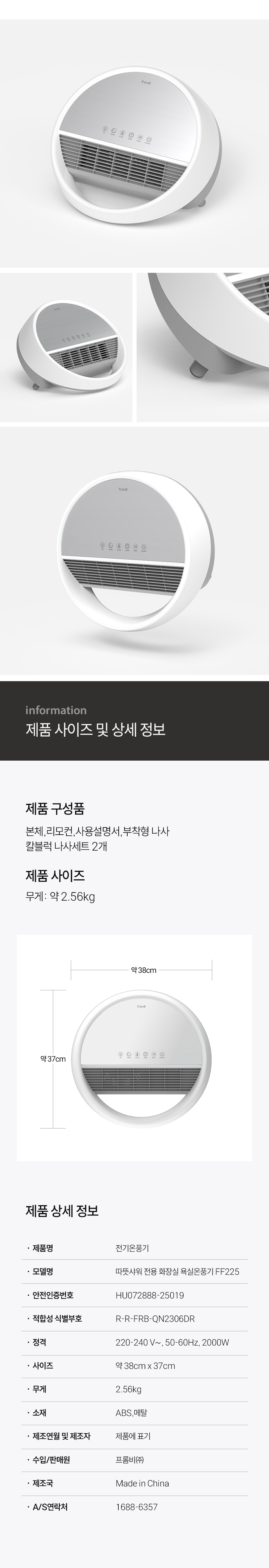 (현대Hmall)프롬비 따뜻샤워 거울 욕실 화장실 벽걸이 온풍기 FF255 무타공 무소음 난방기 미니 전자