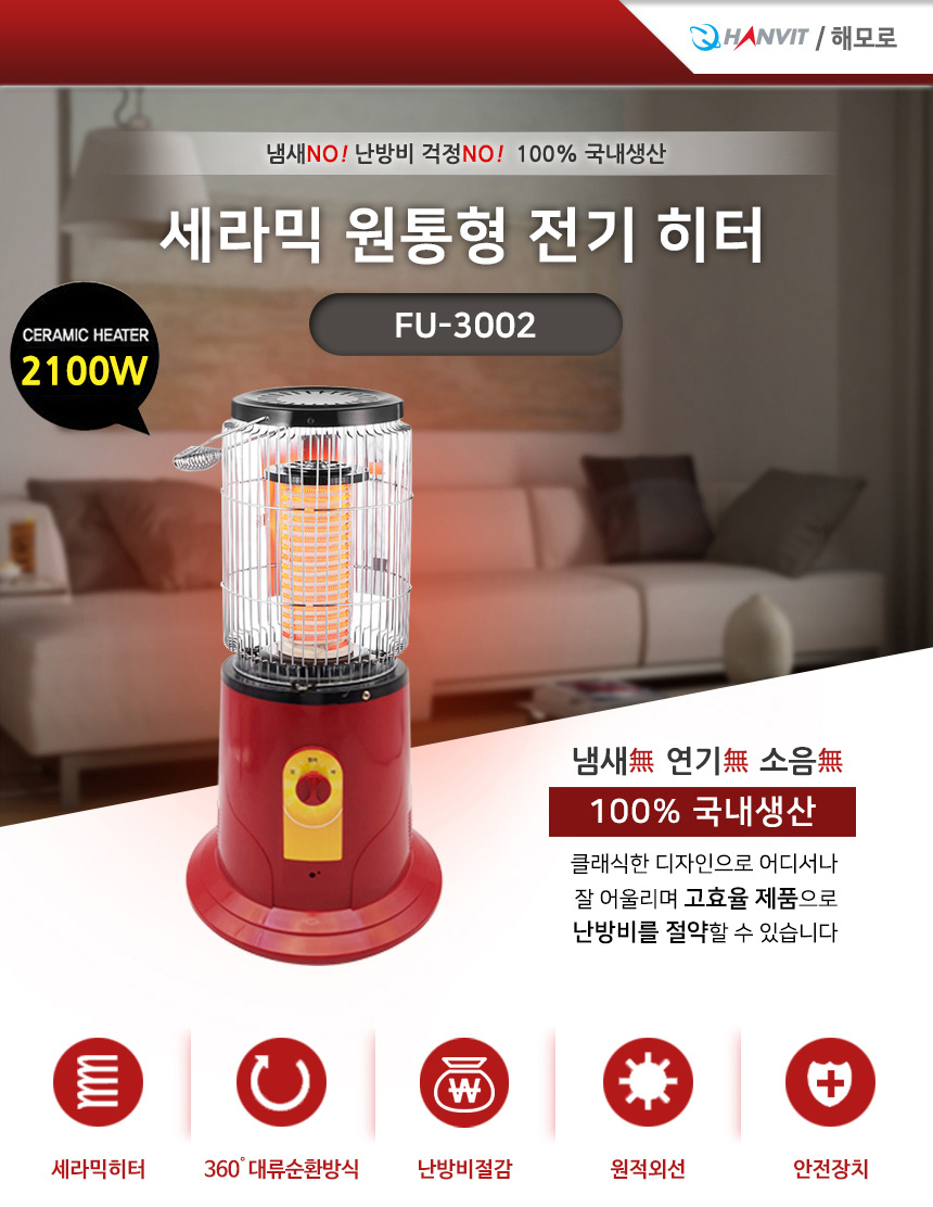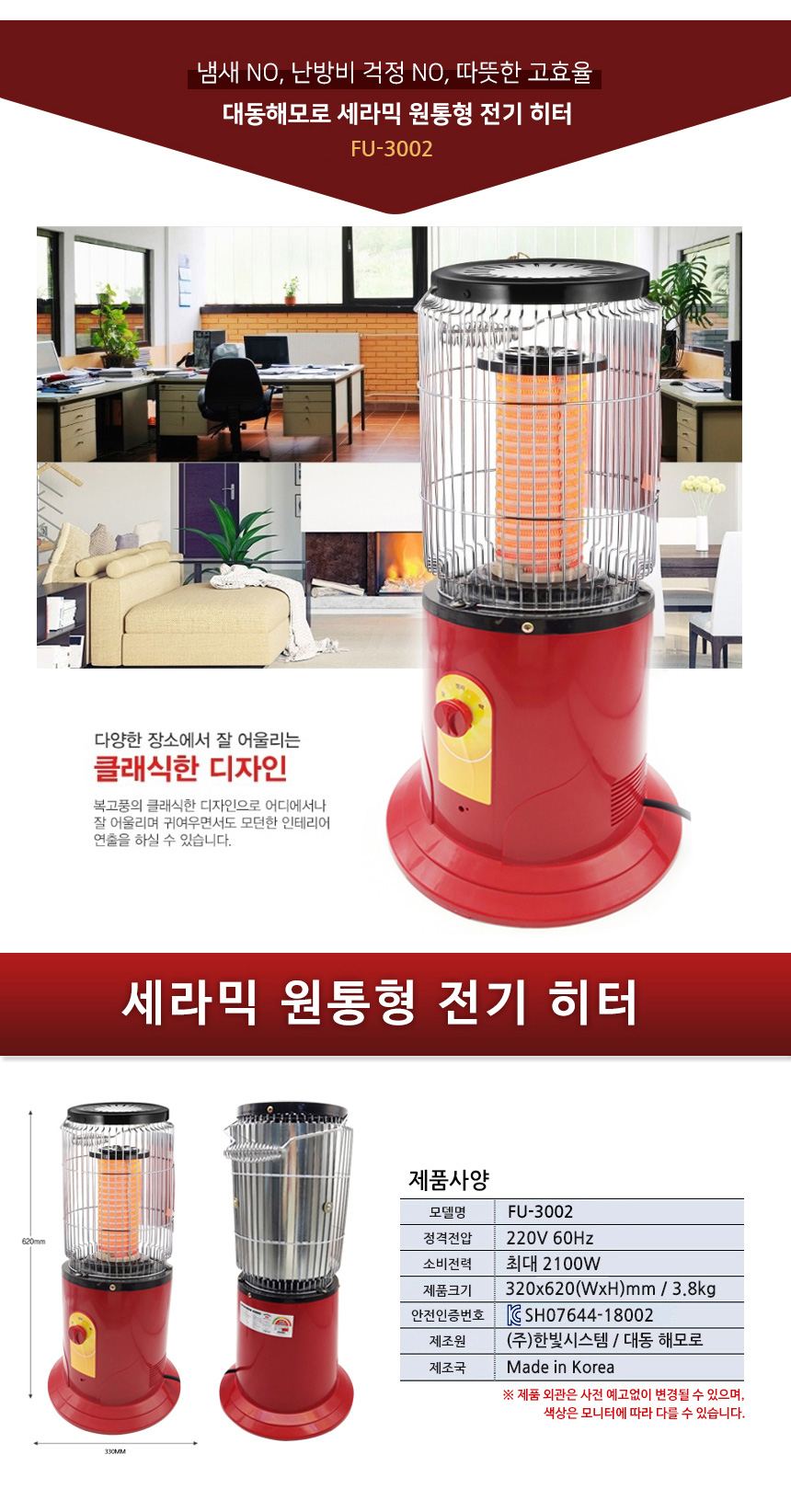 (현대Hmall)한빛 국산 세라믹 원통형 히터 FU-3002