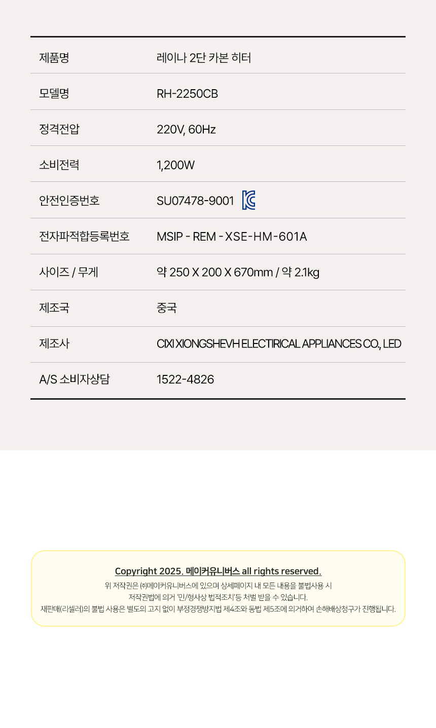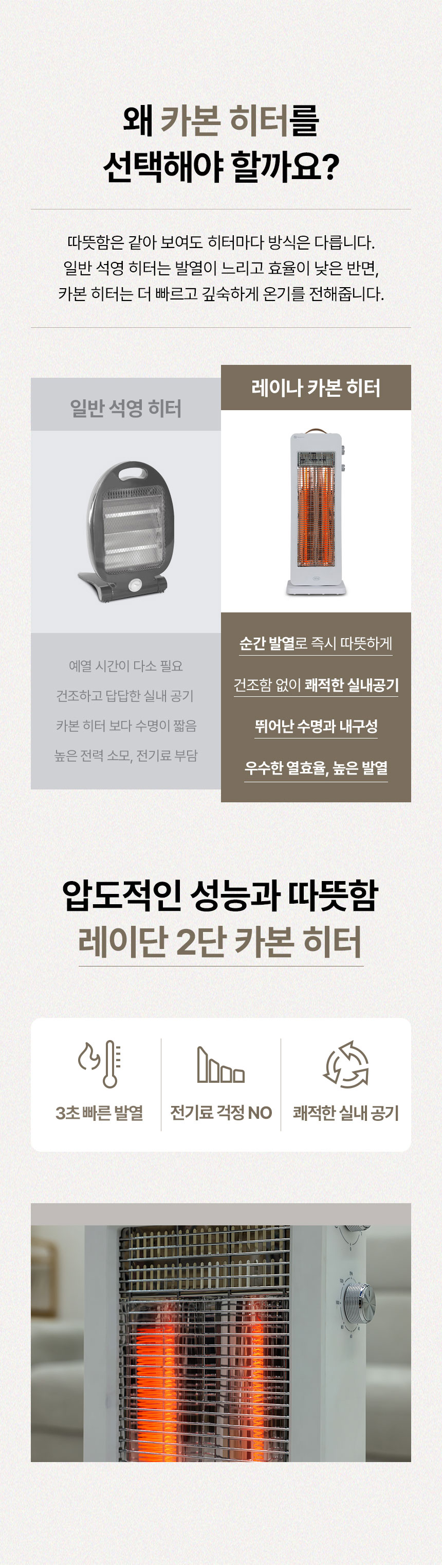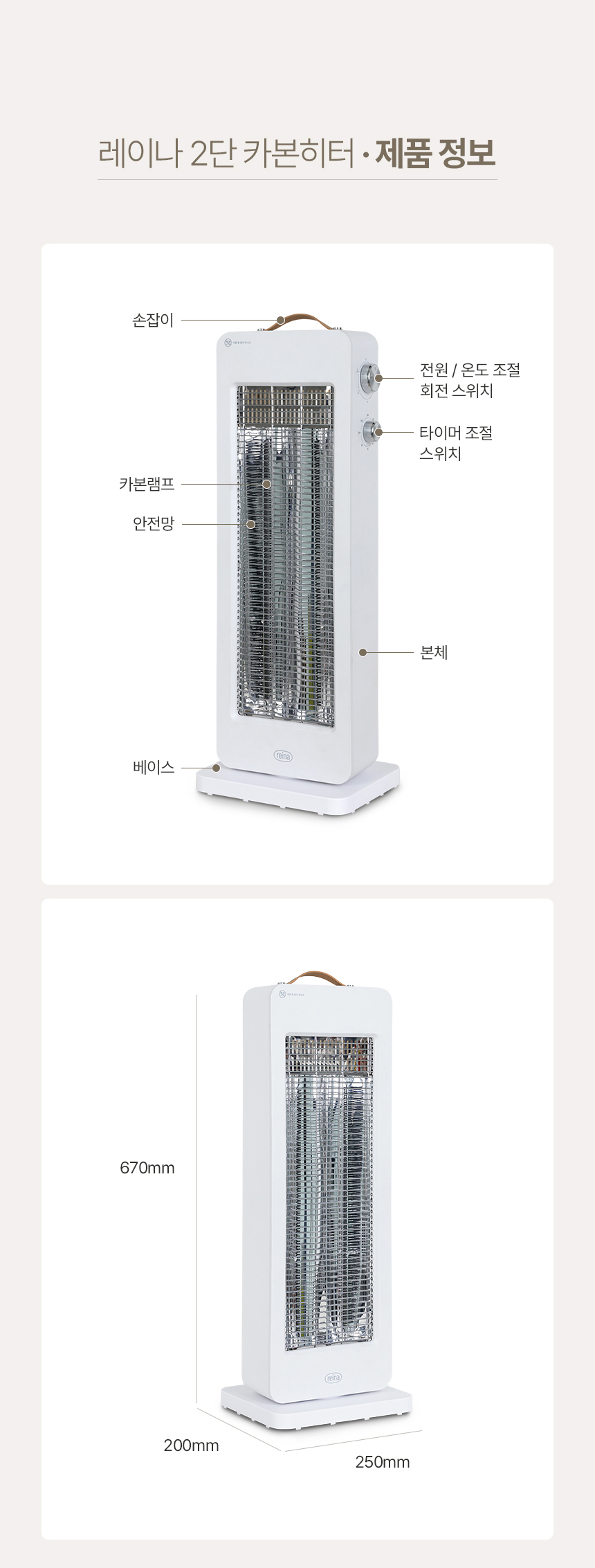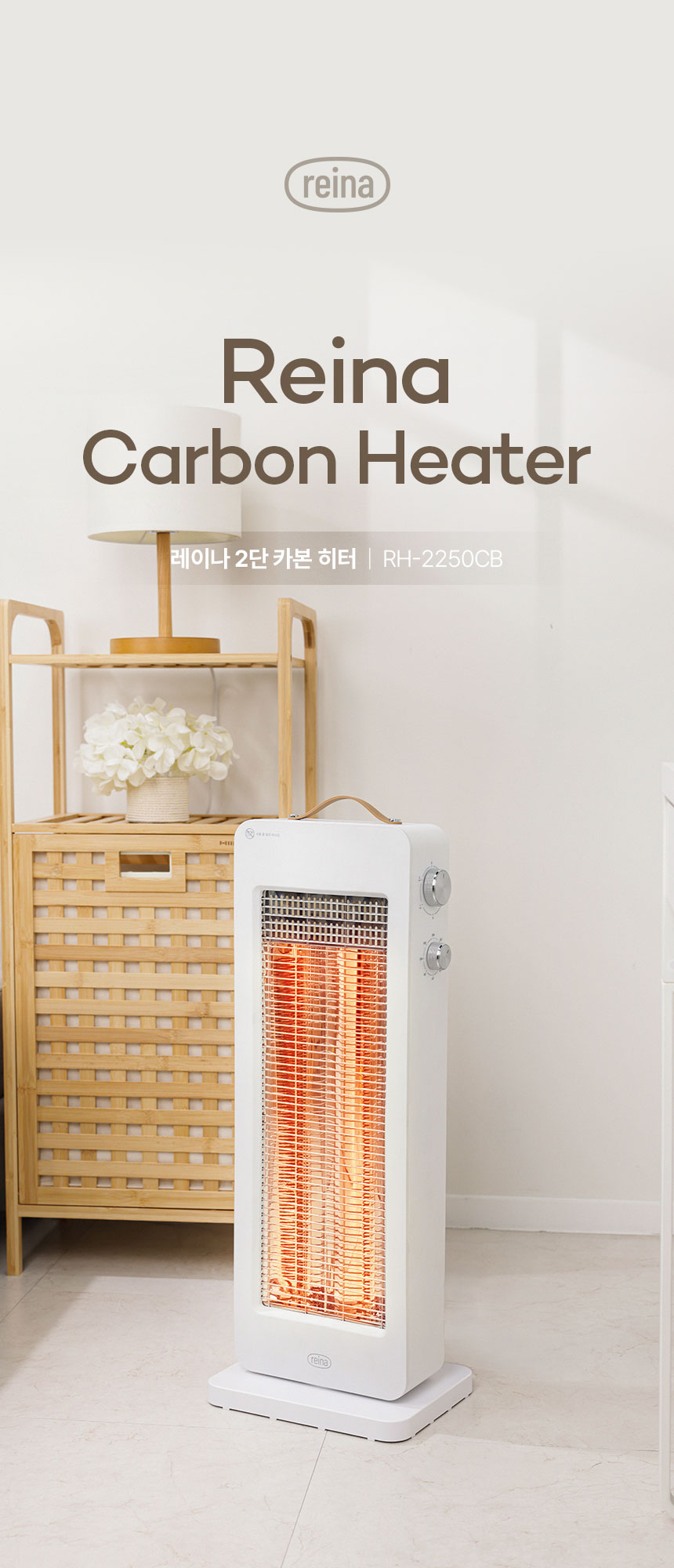 내일도착 REINA 2단 카본 히터 전기난로 RH-2250CB 가정용 사무실 난방기 타이머
