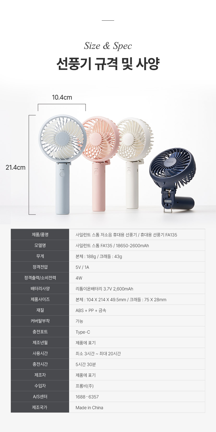 (현대Hmall)NEW 프롬비 사일런트 스톰 저소음 휴대용선풍기 FA135