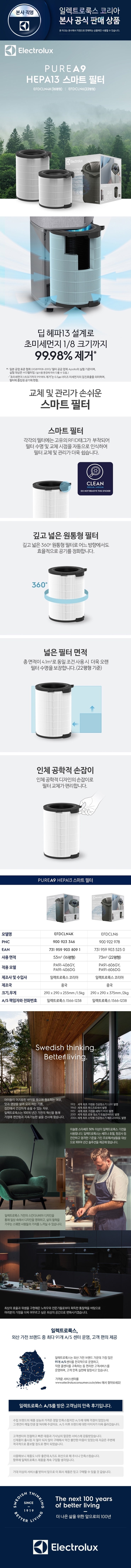 EFDCLN6K 일렉트로룩스 Pure A9 공기청정기 - PA91-606 시리즈 HEPA13 스마트필터 22평형