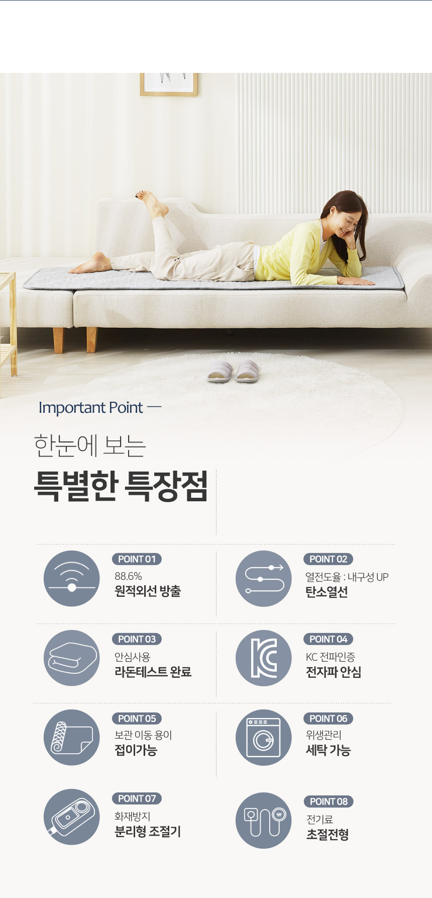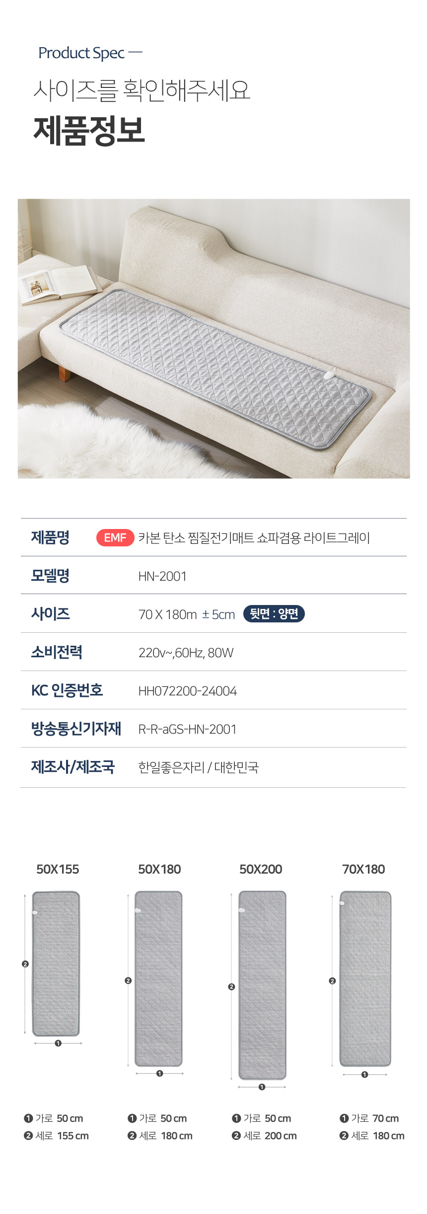 눕자 EMF 카본 탄소 1인용 2인용 찜질전기매트 쇼파겸용 라이트그레이 70X180