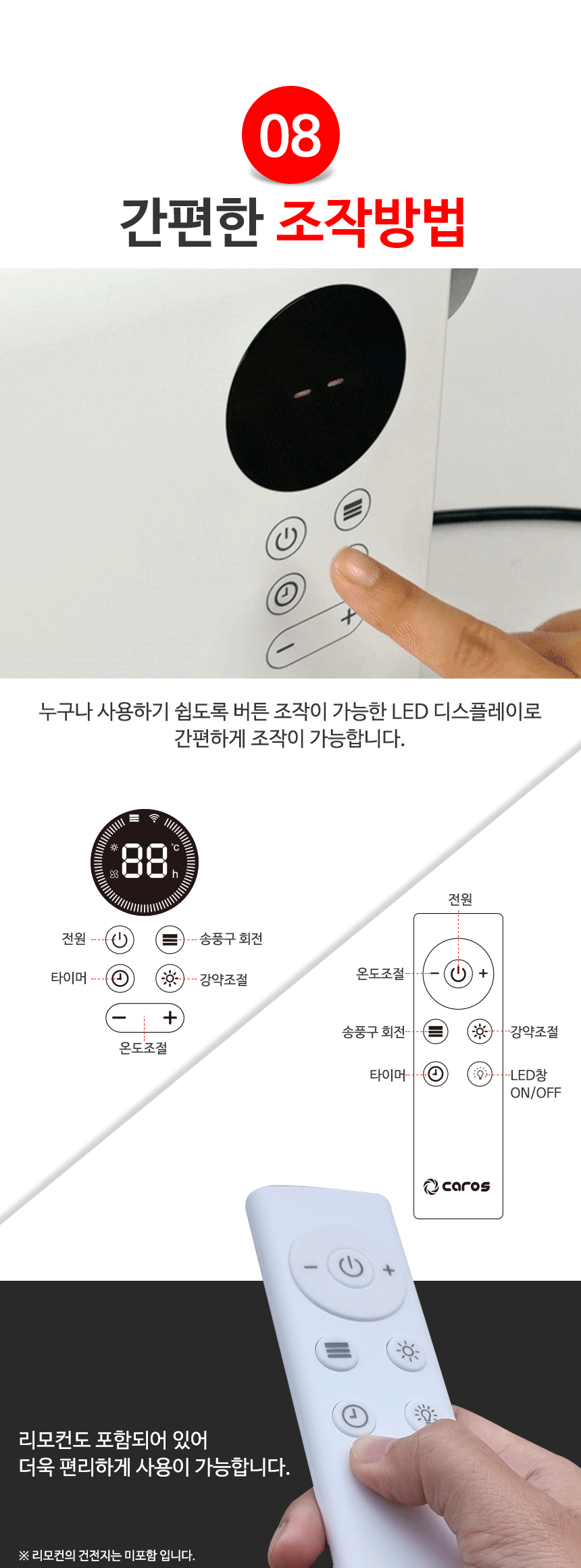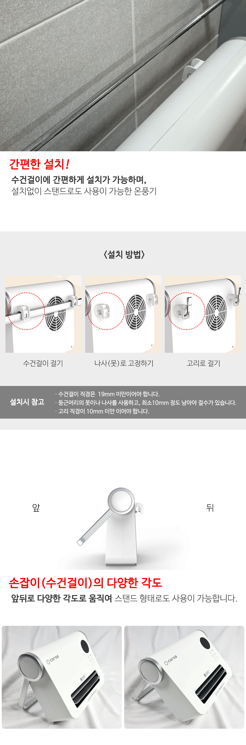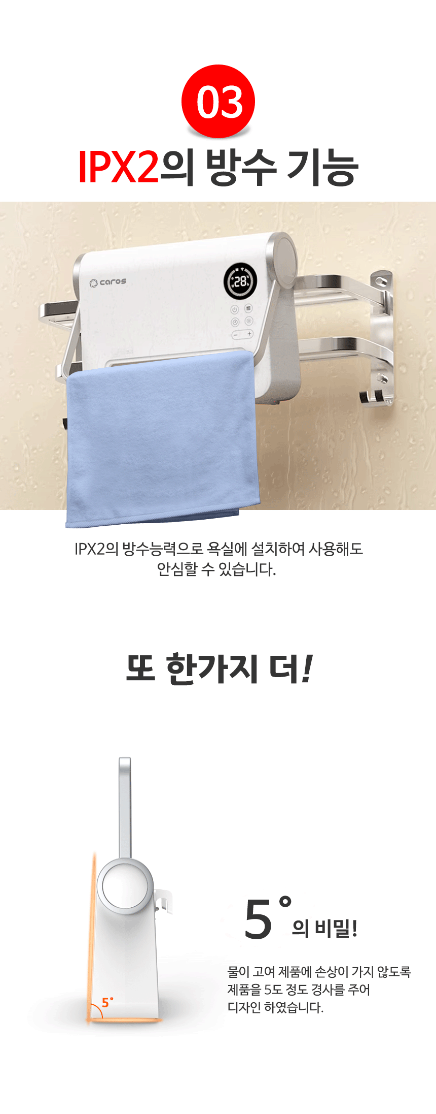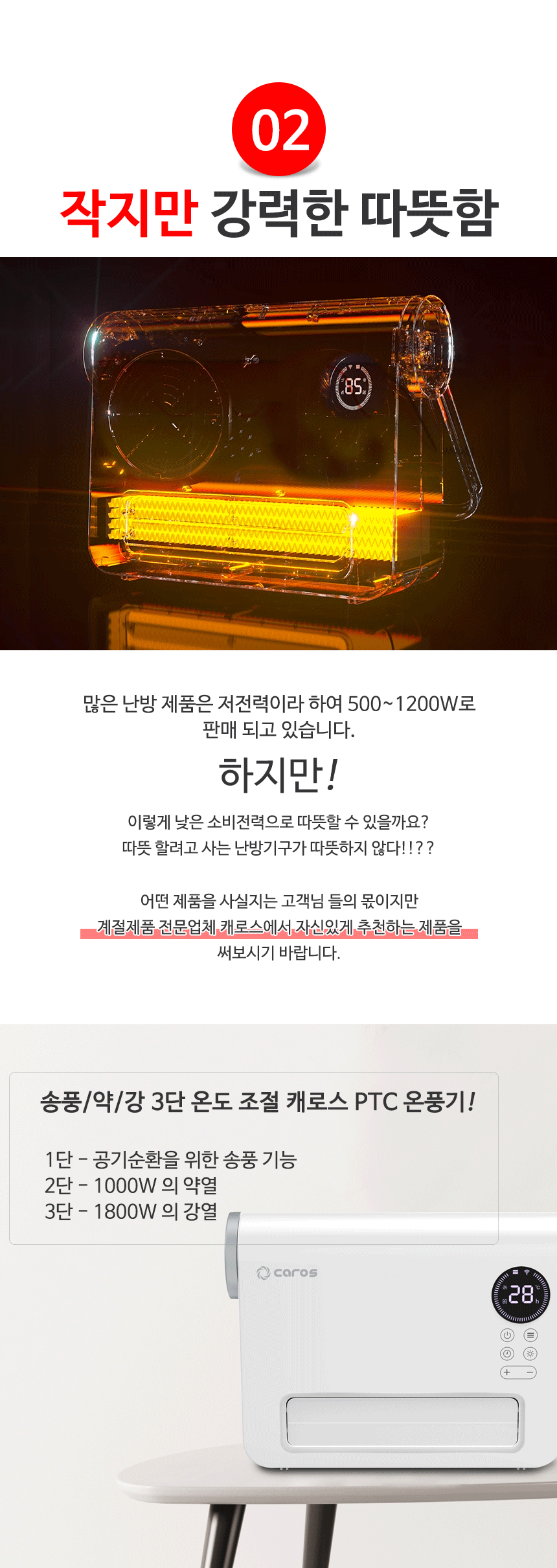 캐로스 욕실 온풍기 CEH-BP2000S PTC 화장실 난방기 캠핑 미니 전기난로 히터 간편설치 어디서든 사용가능