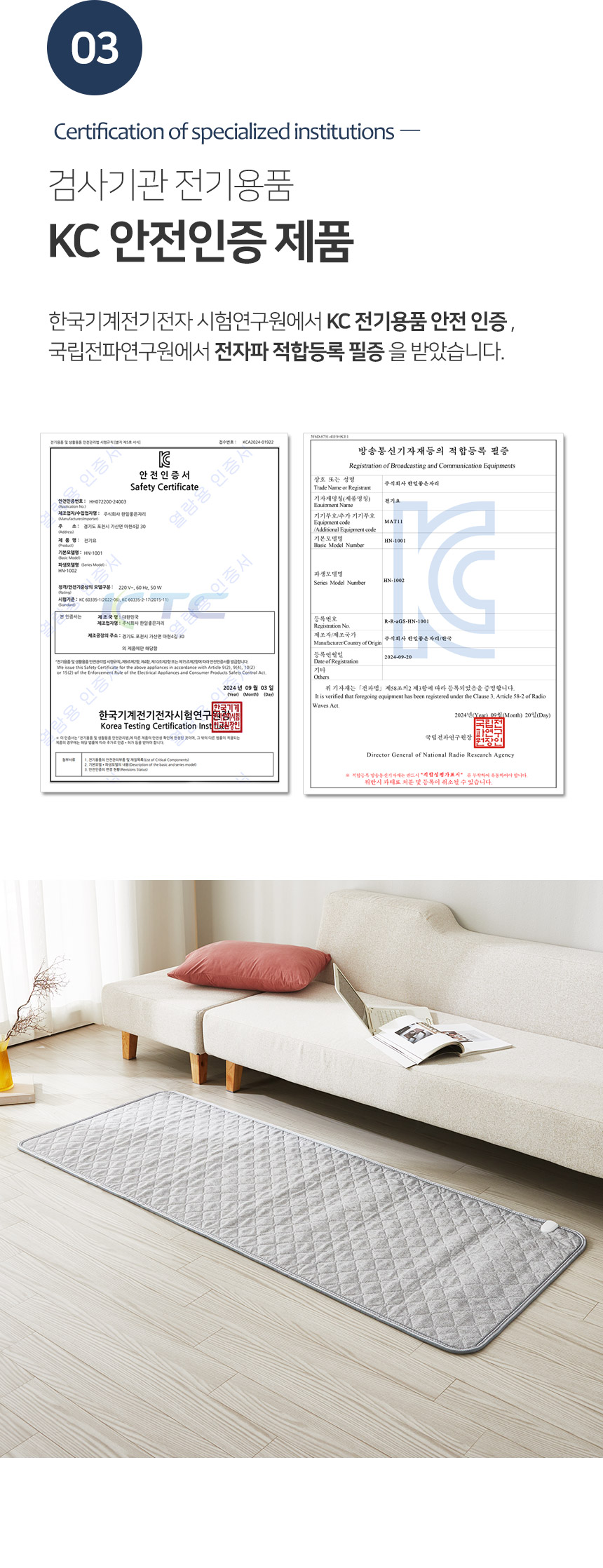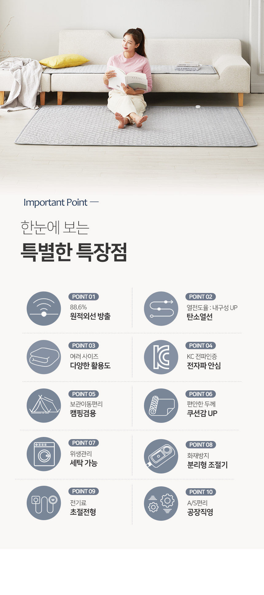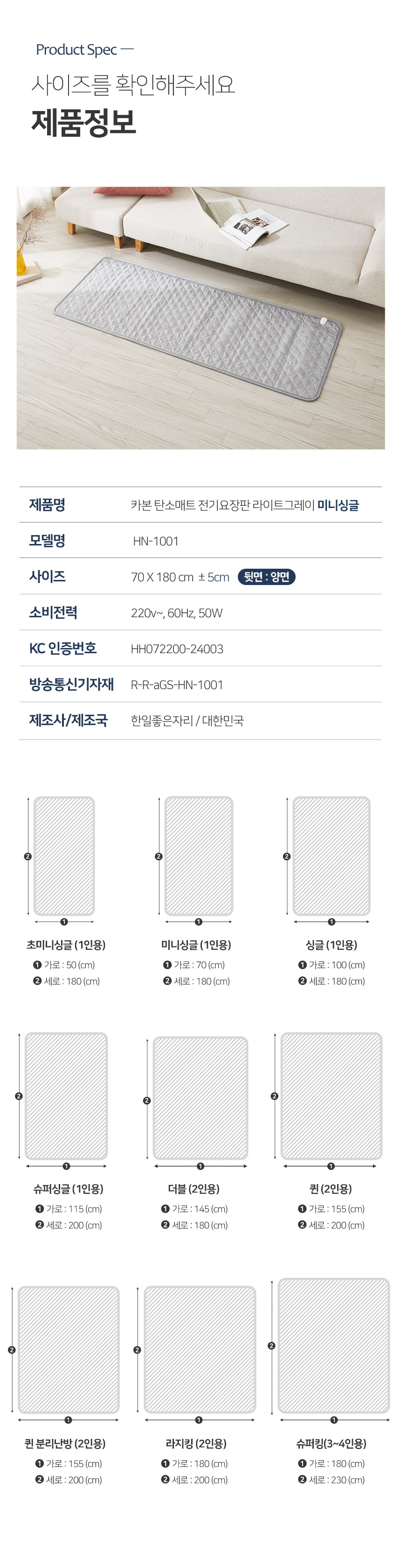 한일좋은자리 카본 탄소매트 전기요장판 라이트그레이 미니싱글 70X180