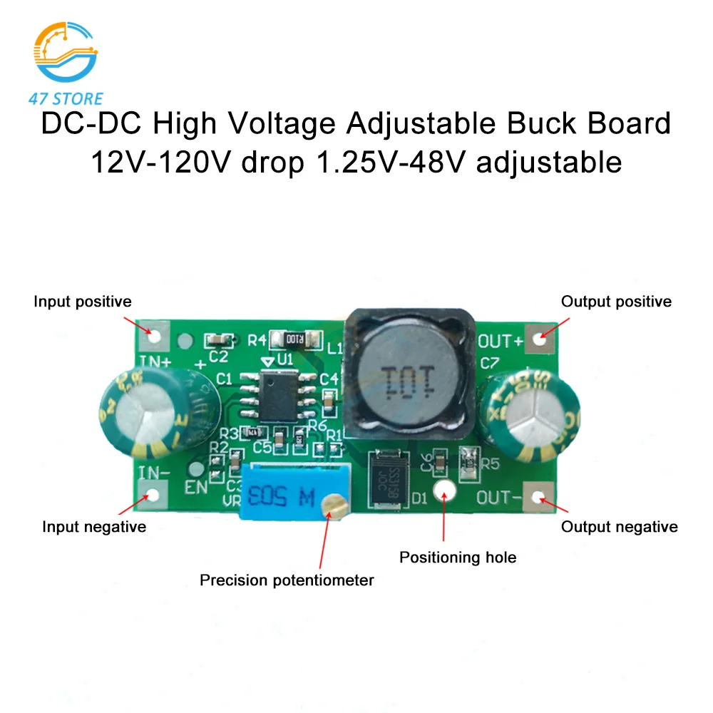 DC-DC 48V 60V 100V 1.25V 48V 스텝 다운 모듈 보드 전압 벅 가변 전원 변환기 1.8V 2.5V 3.3V 5V 9V 12V